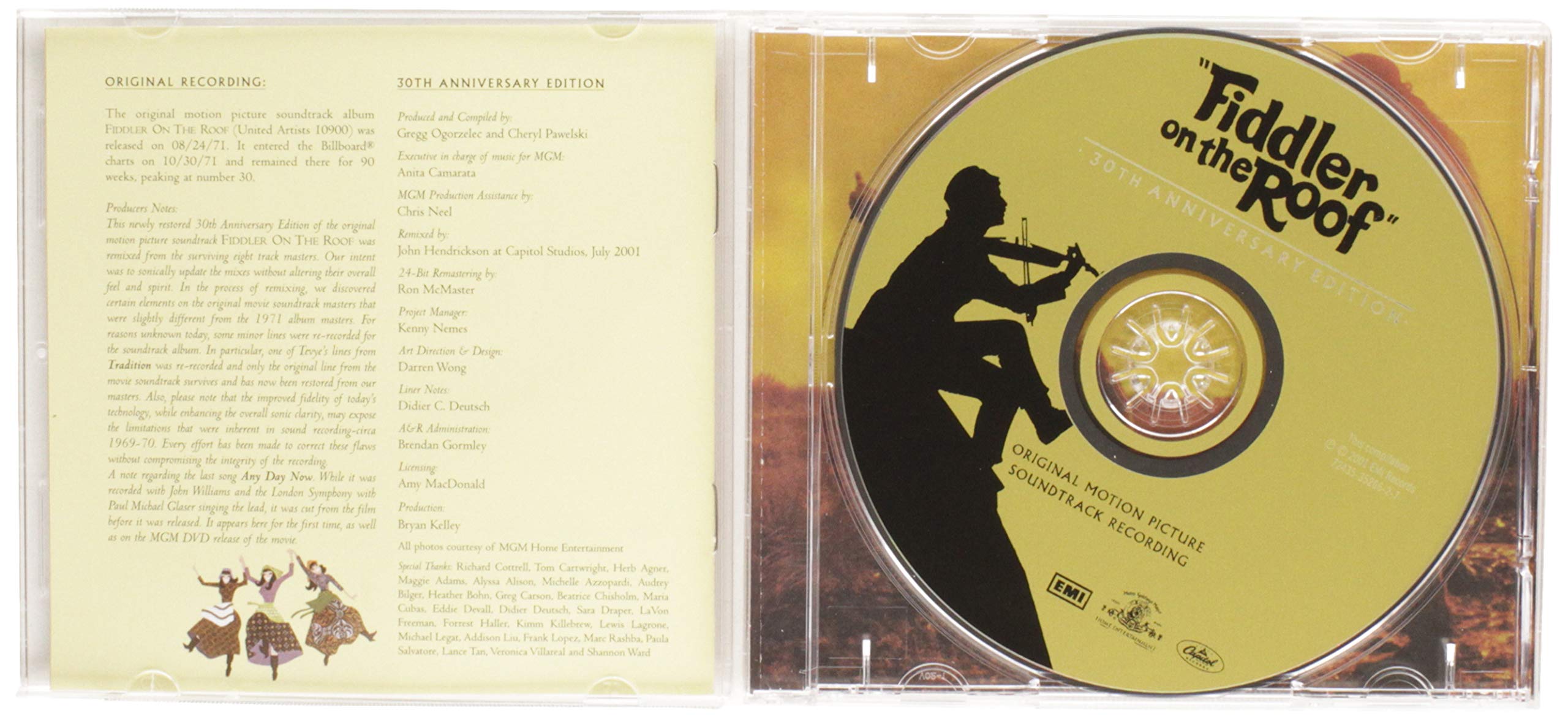 Amazon.com This new version of the Fiddler on the Roof soundtrack coincides with the movie's 30th anniversary (which is also celebrated by a special edition DVD). The CD is notable for several instrumental tracks by John Williams, as well as for "Any Day Now," a previously unreleased song performed by Perchik/Paul Michael Glaser (better known for his starring role in TV's Starsky and Hutch). The soundtrack is often compared unfavorably with the original 1964 cast album, in which Zero Mostel played the part of Tevye (here performed by Topol, who had been in the 1967 London production). But this CD has a lot going for it, including glossy remastering and, of course, Isaac Stern as the fiddler. In the end, whatever version you decide to pick up, Fiddler remains one of the most enduring musicals of all time. --Elisabeth Vincentelli