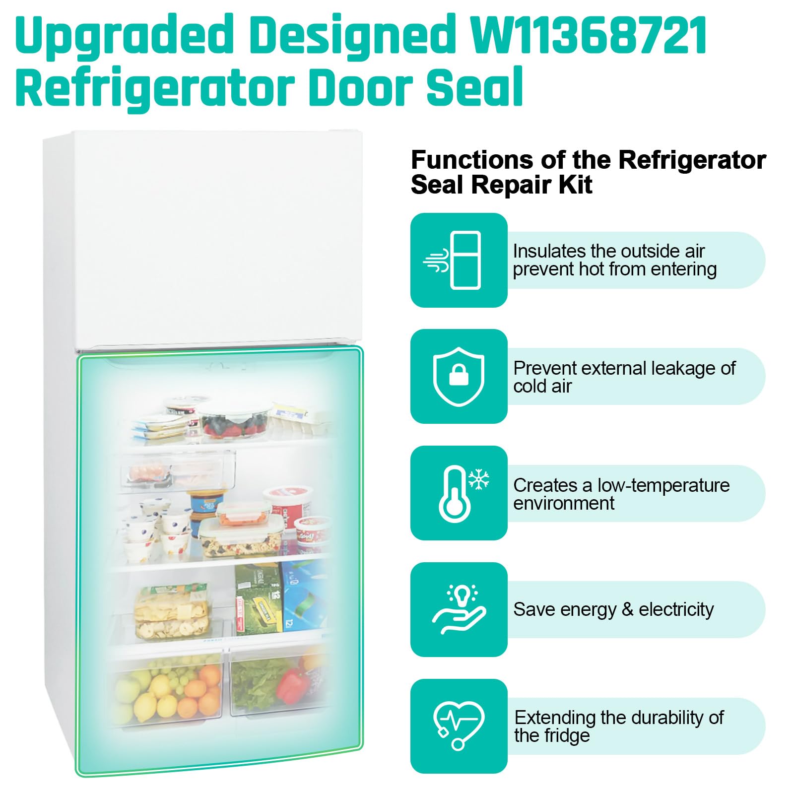 [Thickend Magnetic Strip, Great Sealing] Our 242193206 Frigidaire refrigerator gasket uses thicken magnetic strips, resistant to bending, strong suction for effective sealing and functions the same as original OEM-branded parts, but quality seal better than OEM. Perfect insulates the outside air, no more leaking cold air and sweating door and creates a low-temperature environment to keep your food fresh. You no longer need to worry about food being oxidized or contaminated, Frigidaire door seal will guard the deliciousness for you.