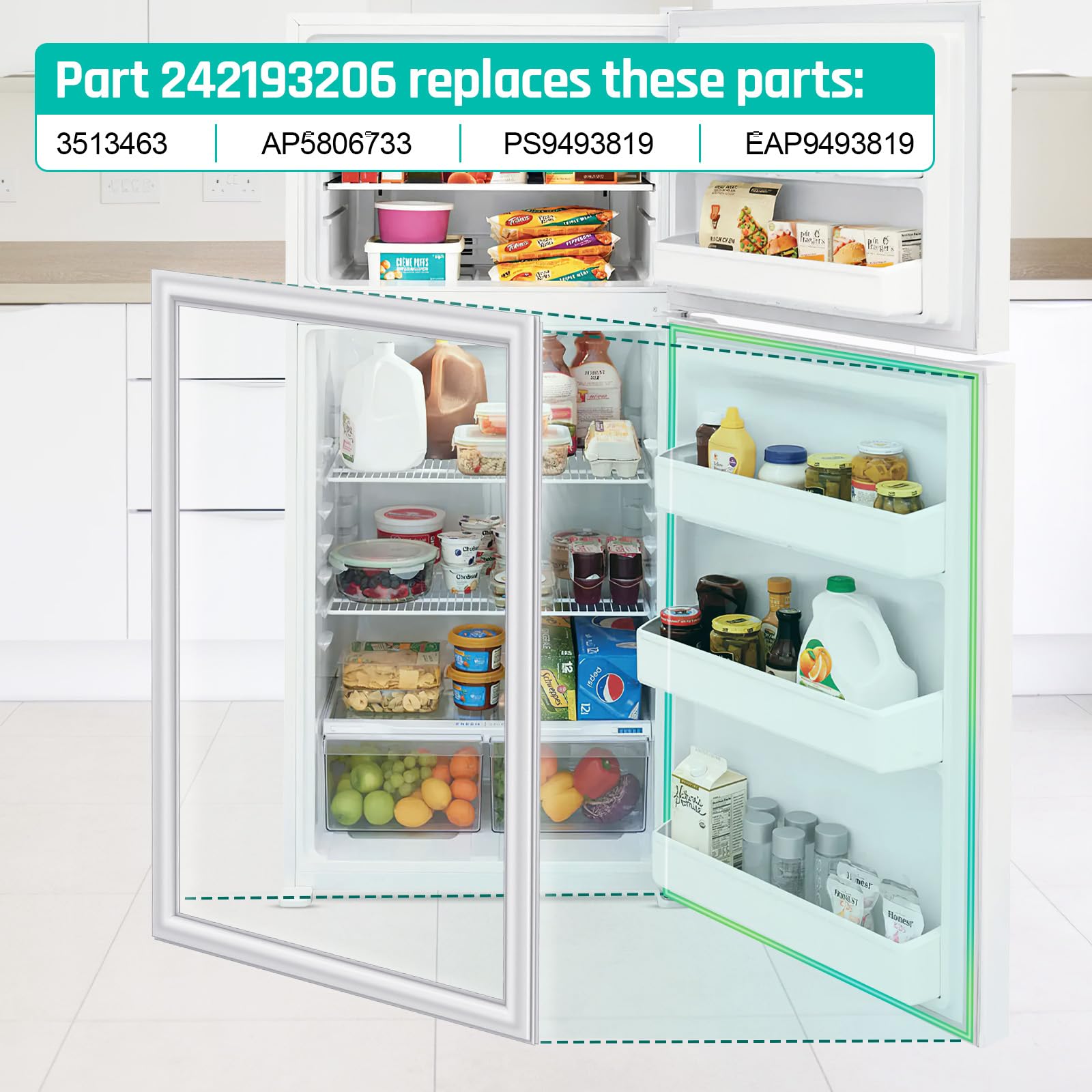 [Replace Part Numbers] 242193206 refrigerator door sealer compatible with Frigidaire, Kenmore, Crosley, White-Westinghouse refrigerator, can replaces these parts 3513463, AP5806733, PS9493819, EAP9493819 . please check you part number and model number before ordering. If you are unsure about the compatibility, you can send us your model number for verification.