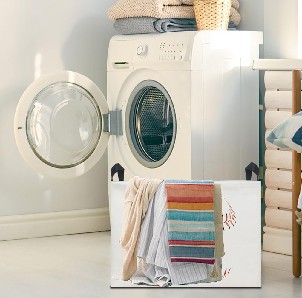 NATURAL MATERIAL: Polyester + Waterproof PE Coating Lining. Sturdy wire frame in the material at the top, which to achieve the effect of moisture resistant, lightweight and durable. Easy to clean.
