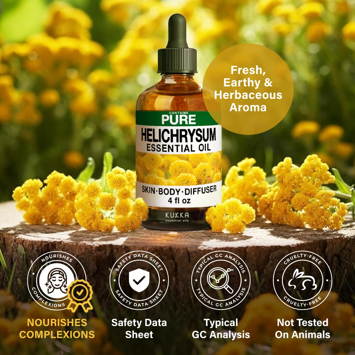 Experience premium quality helichrysum oil. Sourced from Slovenian helichrysum flowers, this cruelty-free, non-GMO oil elevates self-care routines. Versatile addition for skin care collection.