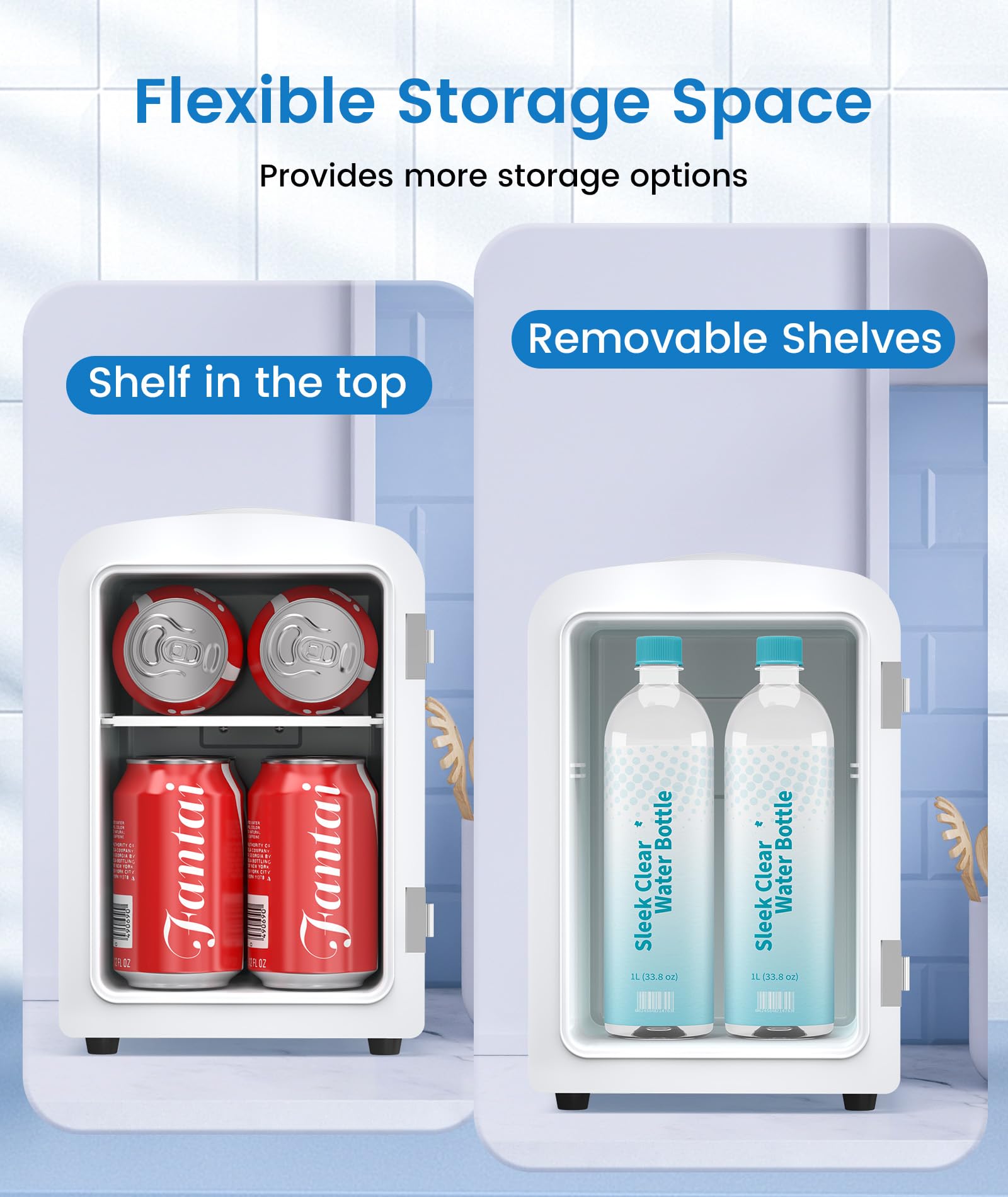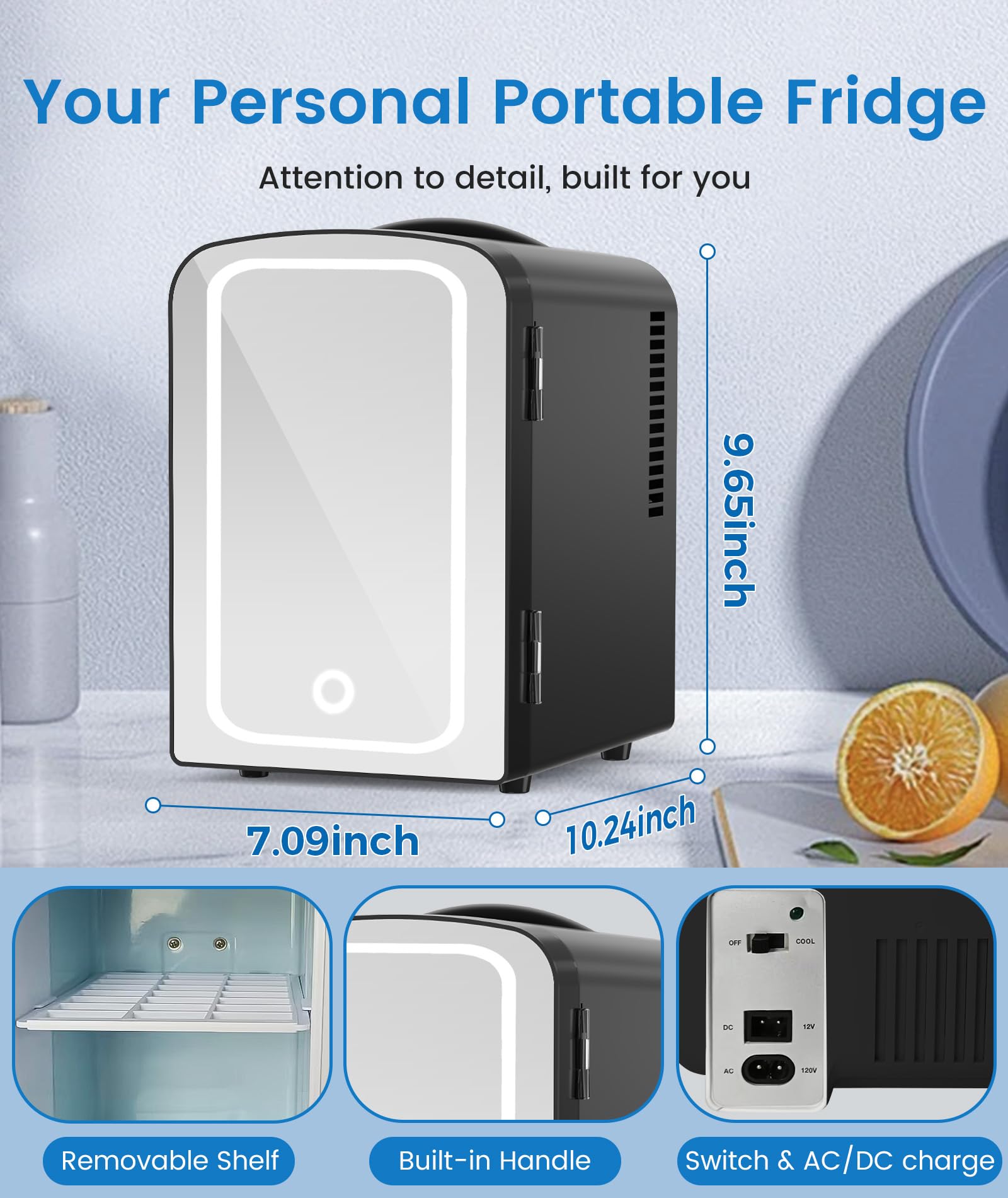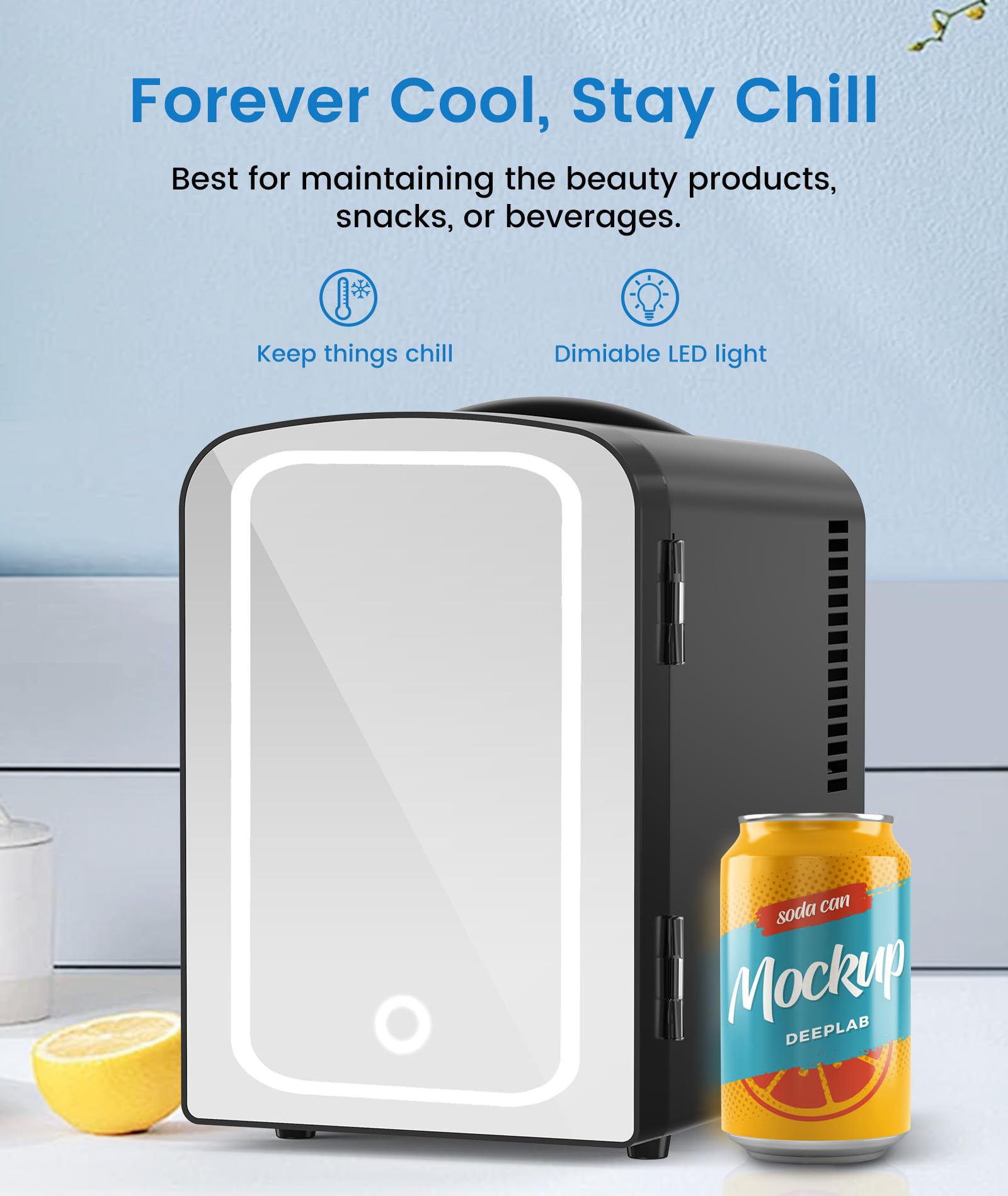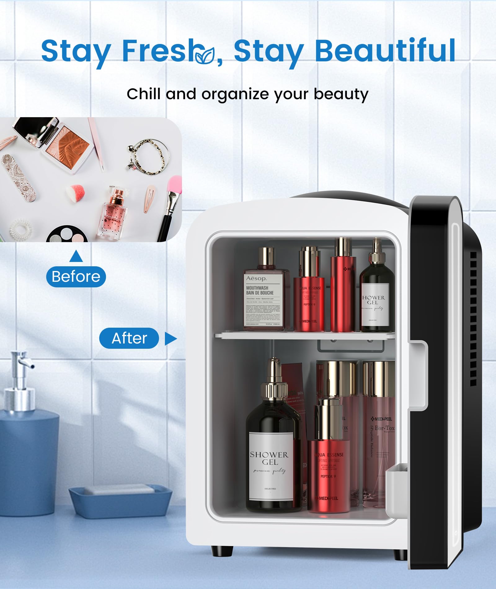 【Multifunction Mini Fridge】Electactic mini fridge features a built-in makeup mirror and a removable shelf, allowing flexible storage for various items. Perfect for skincare, cosmetics, food, beverages, breast milk, insulin, medications, and other essentials. Stay fresh and cool at all time!