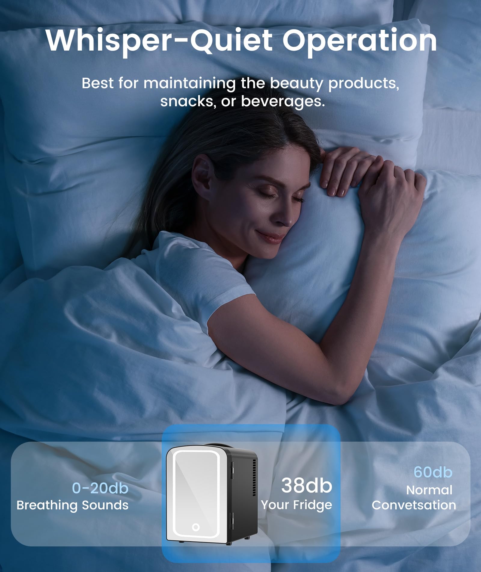 【Eco-friendly & Safe】The fridge’s semiconductor refrigeration chip is freon-free and pass the ETL test, so you can rest easy-- even with the fridge right next to you. It is great for bedrooms, offices, dorms, travel, car, camping and ideal gift for friends.