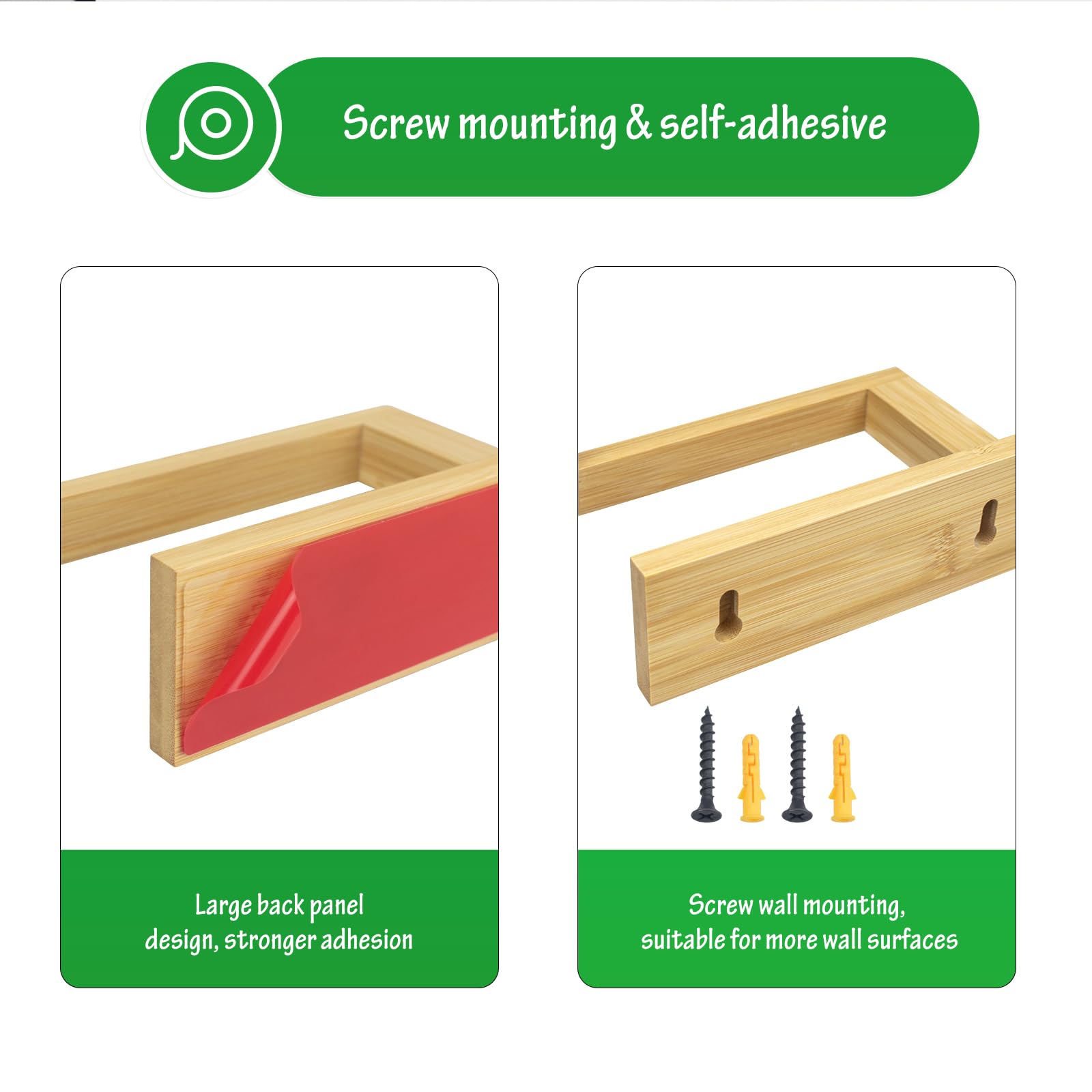 【Bamboo ingredient】 This wall-mounted toilet paper holder is made of 100% bamboo, with a varnished surface, waterproof and anti-corrosive, making it a great addition to any bathroom