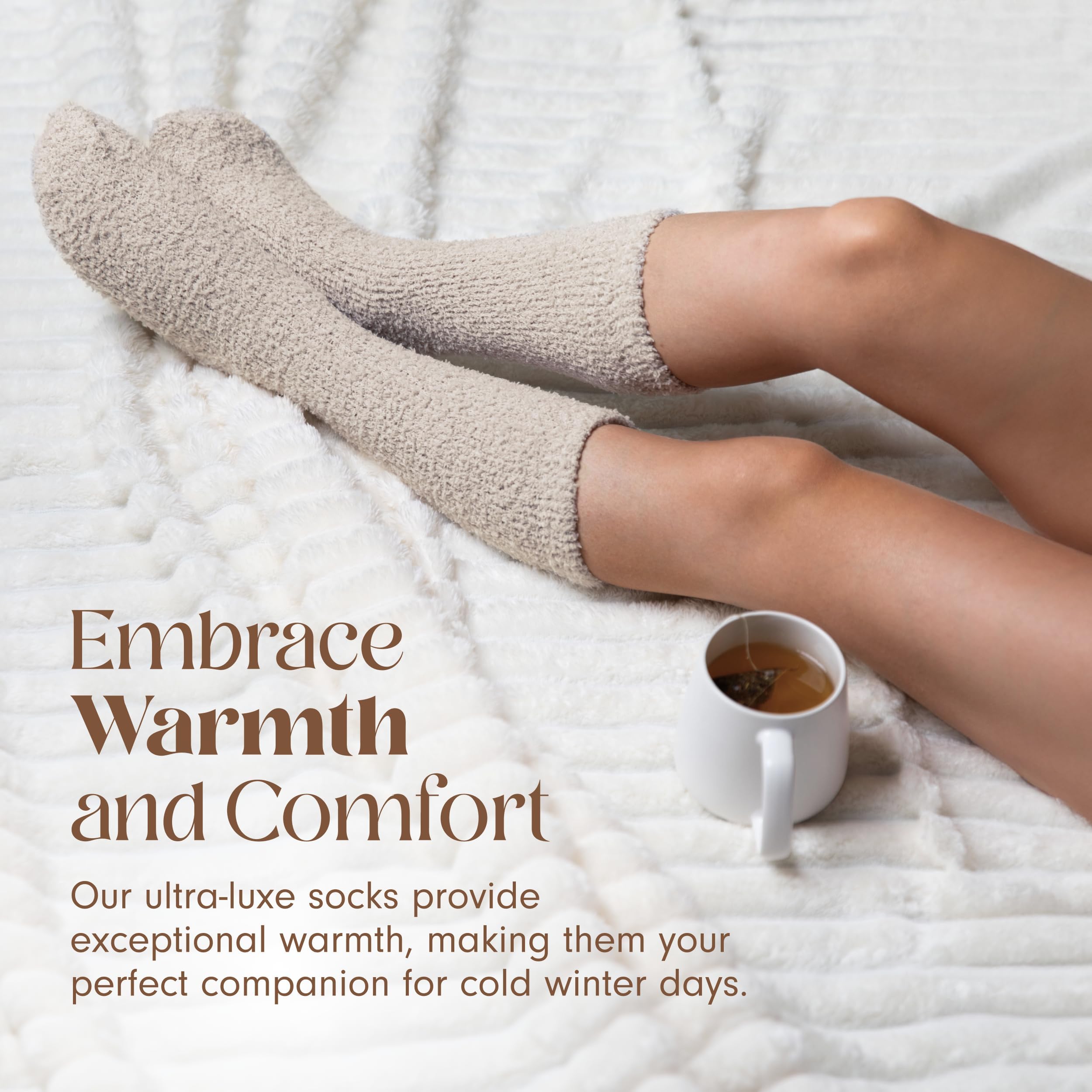 Treat Yourself to Luxury: Enjoy the day you deserve with Cloud Socks. These warm & cozy women's fuzzy socks are your ticket to relaxation. Slip on the self-care that you deserve with a pair of super soft socks.