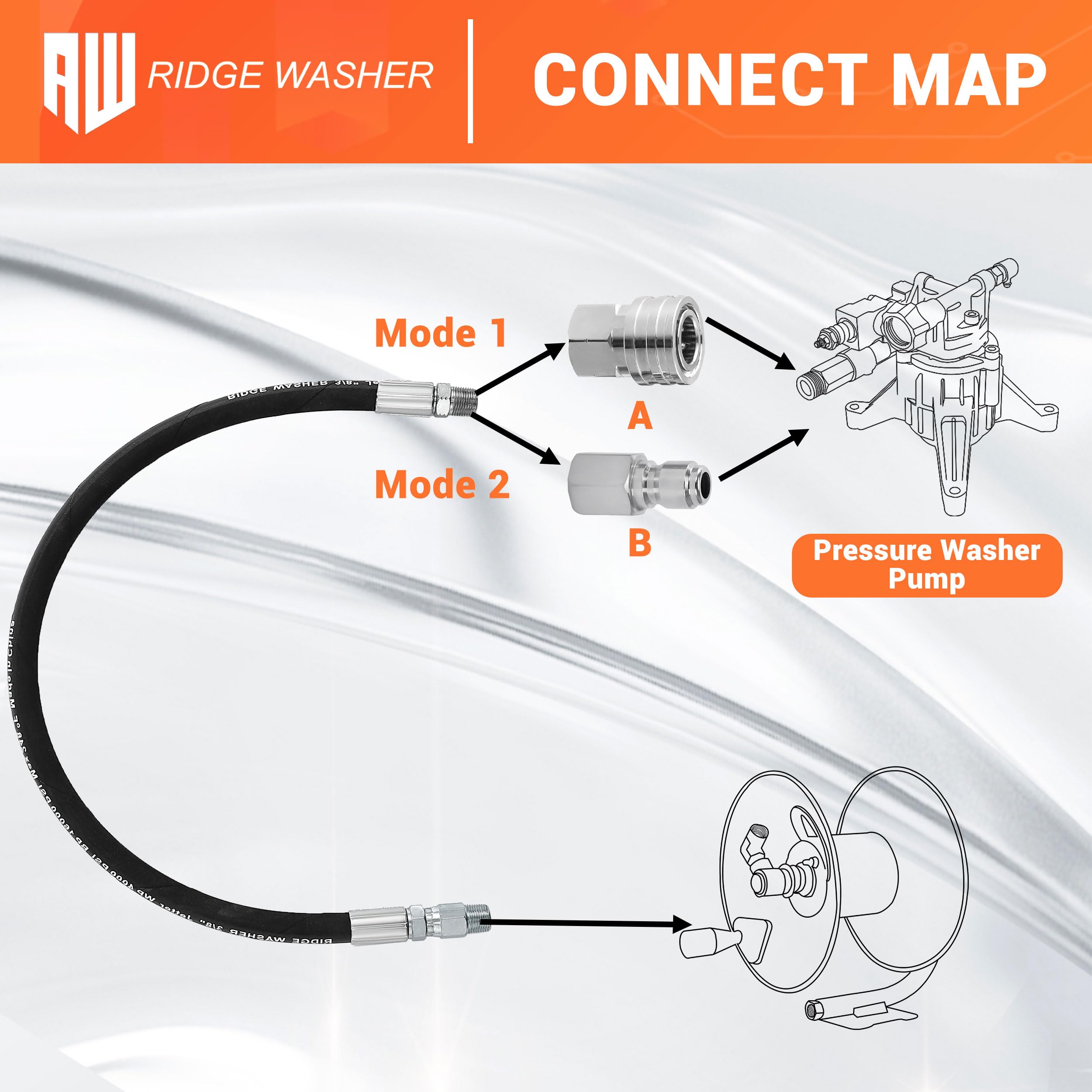 𝐏𝐀𝐂𝐊𝐀𝐆𝐄 𝐈𝐍𝐂𝐋𝐔𝐃𝐄: One pressure washing jumper hose ( 2 FT ), two pressure washer hose adapters: one piece 3/8 inch female NPT to 3/8 inch quick connect socket and one piece 3/8 inch female NPT to 3/8 inch quick connect plug