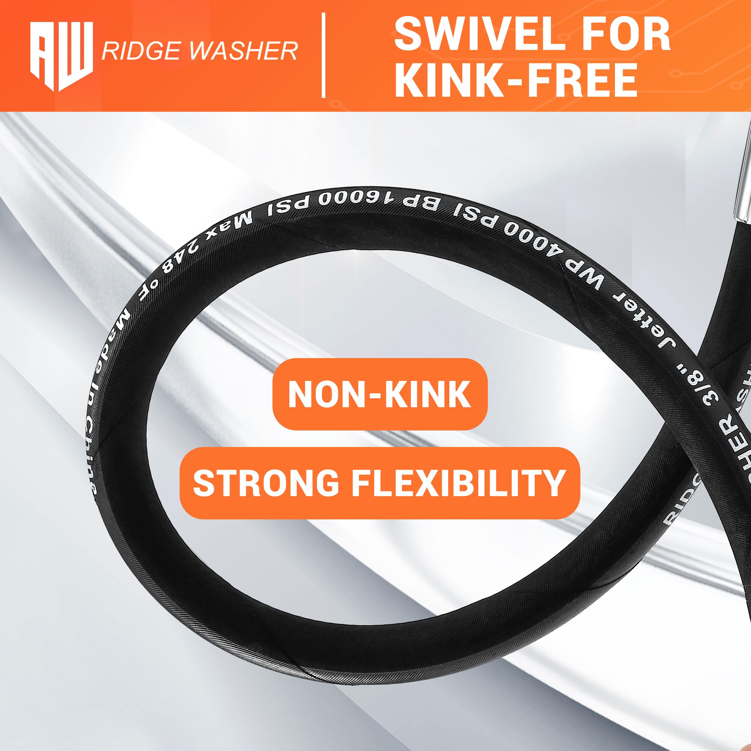 𝐍𝐎 𝐓𝐖𝐈𝐒𝐓𝐈𝐍𝐆 & 𝐃𝐈𝐒𝐓𝐎𝐑𝐓𝐈𝐍𝐆: When using the power washer whip hose, you'll find it incredibly convenient! The pressure wash whip line doesn't bend or wind, effectively extending its service life
