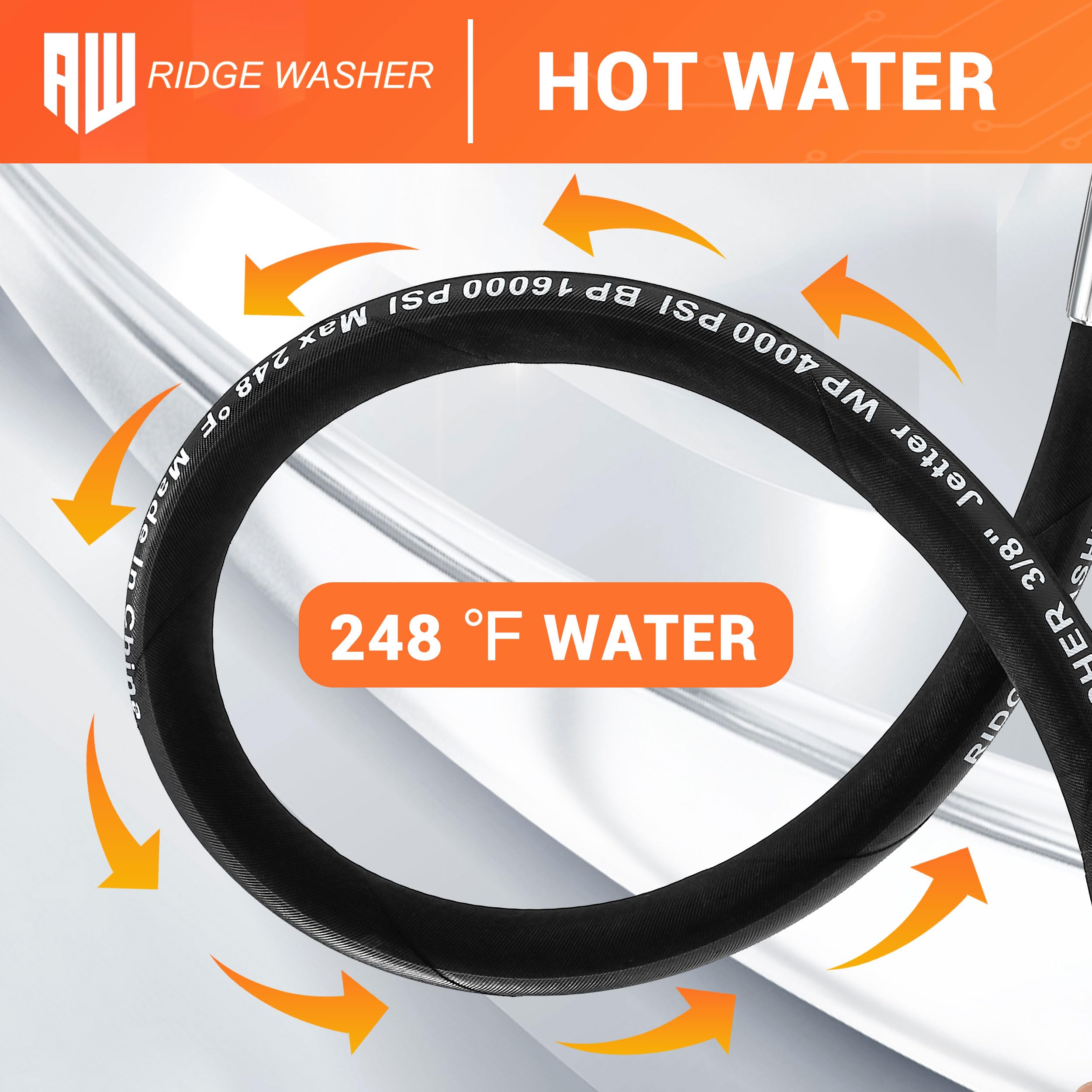 𝐍𝐎 𝐋𝐄𝐀𝐊𝐈𝐍𝐆: Pressure washer jumper hose is braided from upgraded high-strength steel wire, which is resistant to wear and tearing. The pressure washer whip hose's pipe joints are exceptionally strong, ensuring no falling off or leaking