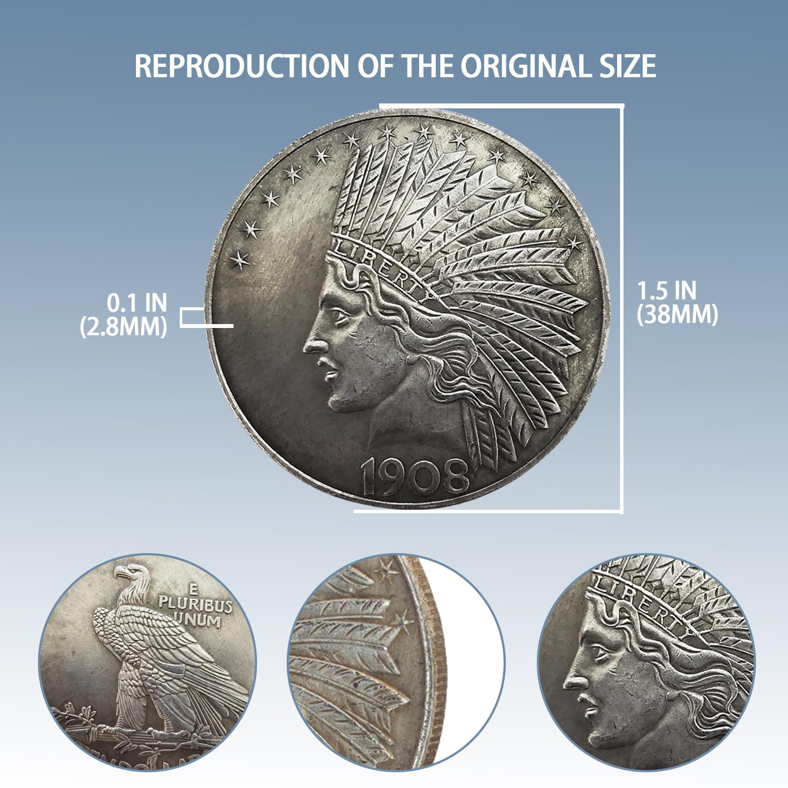 Rare Coin: This vintage-inspired replica of the 1908 coin showcases the historical significance of numismatics and the understated beauty of coin artistry. Perfect for display in homes or offices, it makes an ideal gift for history buffs and collectors of rare ancient coins.
