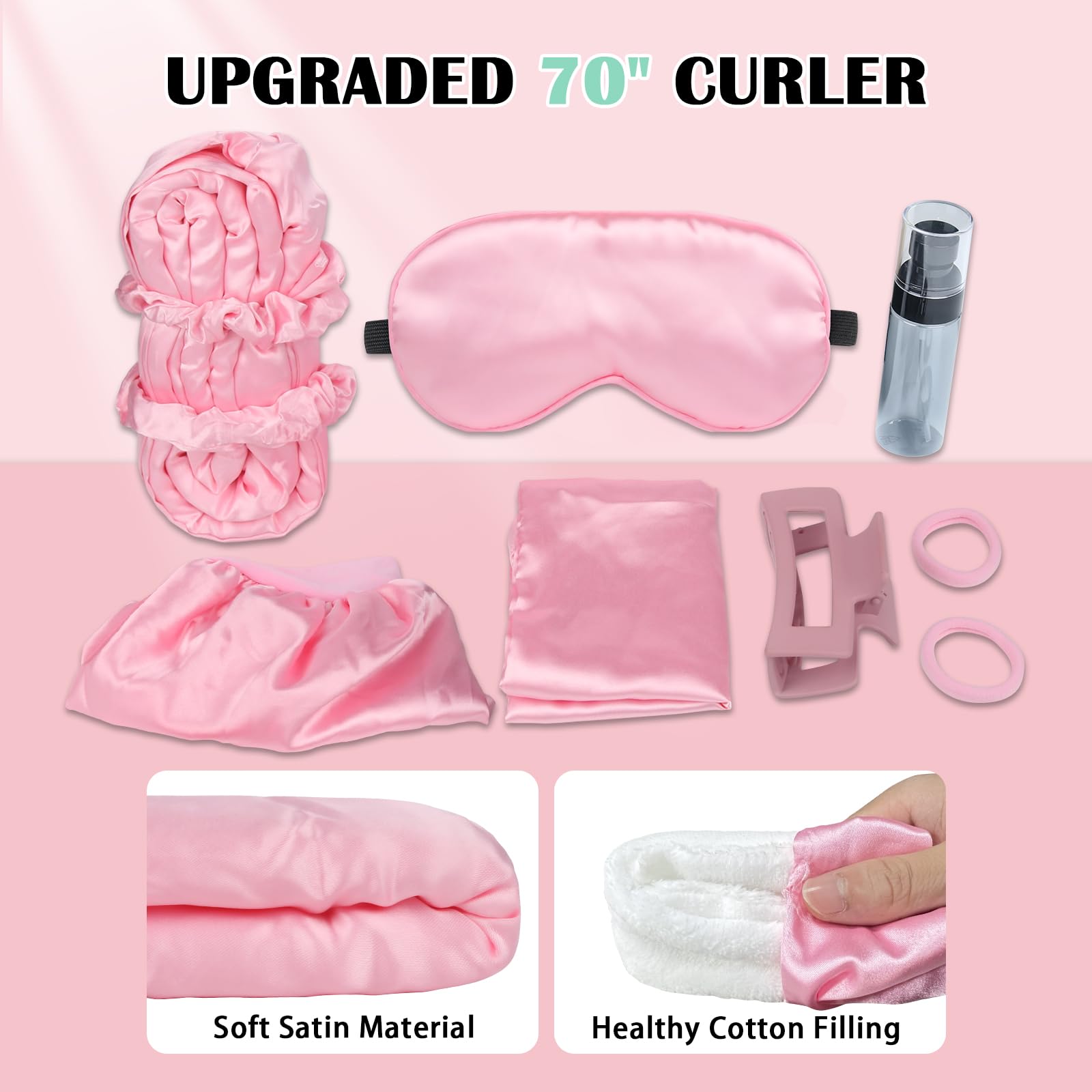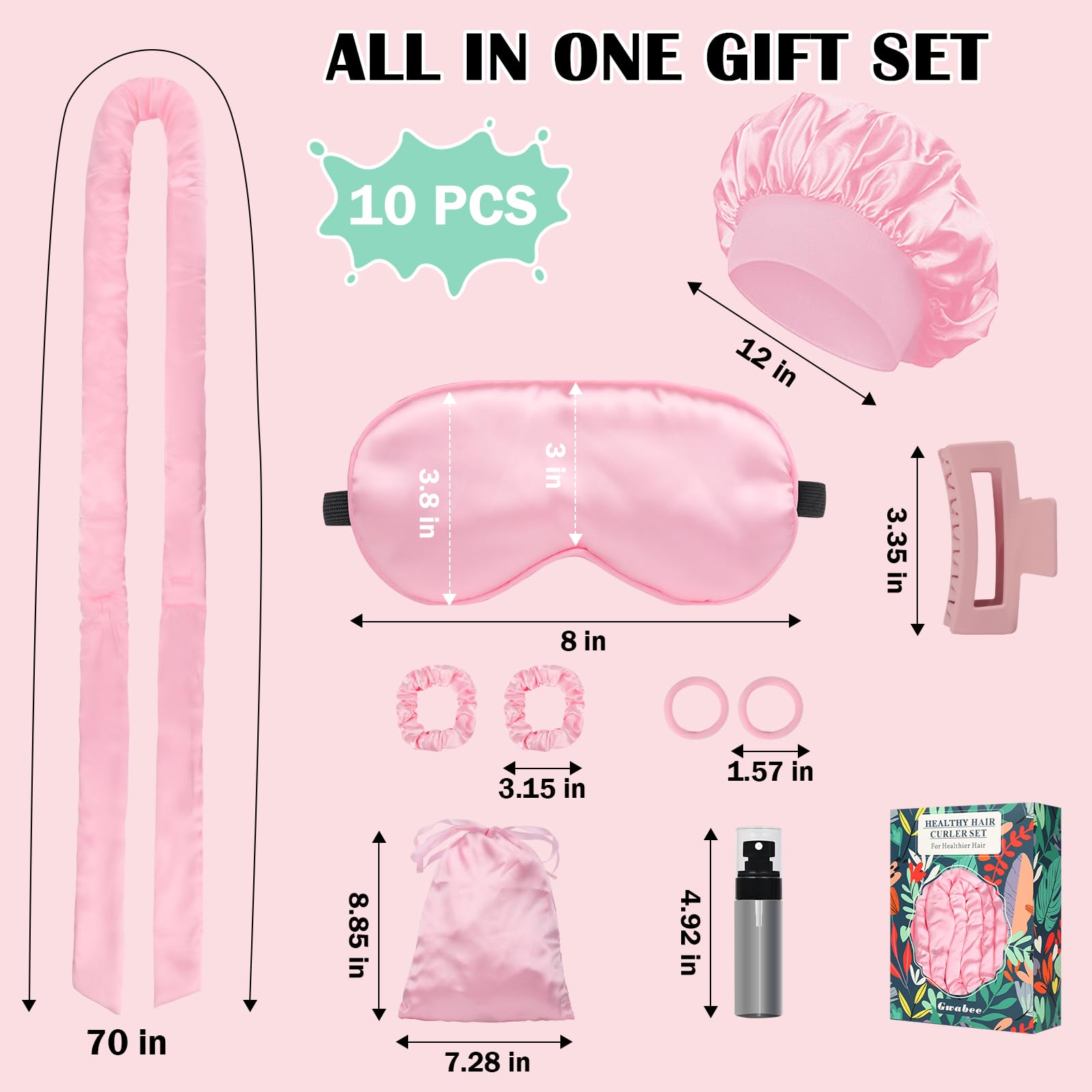 Thoughtful Set for Women: Our heatless curling set includes 10 items: 1 x 70-inch long satin curling rod headband, 1 x satin hair bonnet for sleep, 1 x silk satin sleep eye mask, 1 x hair clip, 2 x satin hair ties, 2 x elastic hair ties, 1 x satin storage bag, and 1 x spray bottle. This all-in-one curling rods set is packaged in an exquisite box, making it the perfect present for your wife, mother, daughter, friends, or colleagues