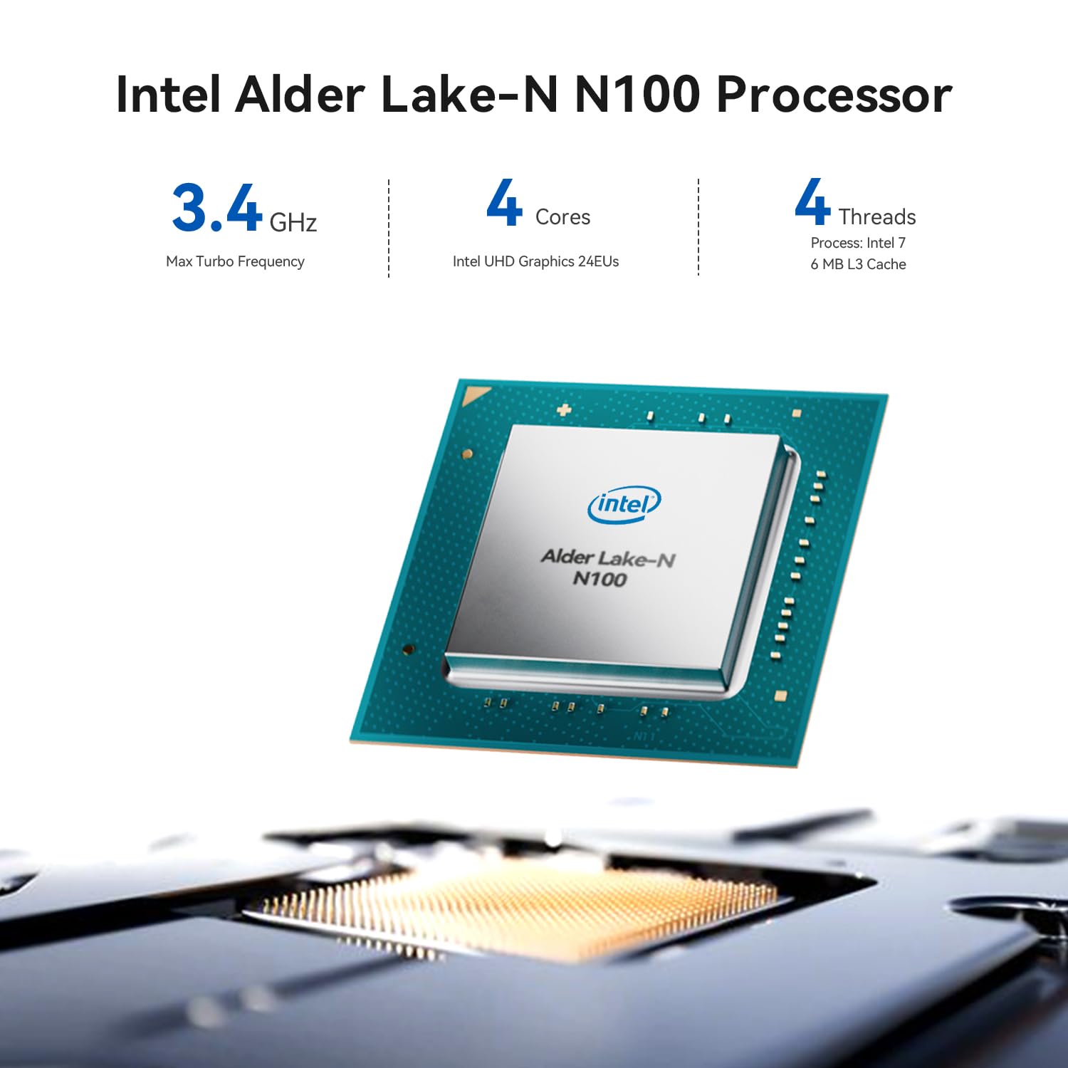 【WiFi 6 & Bluetooth 5.2】N100 mini pc computer built in WiFi 6、Bluetooth 5.2 and 2.5G LAN Ethernet allow for easy connectionsfreeing you from the constraints of cables while eliminating delays and disconnections, With Bluetooth 5.2, you can connect a mouse, stereo or headset to save space in the office.