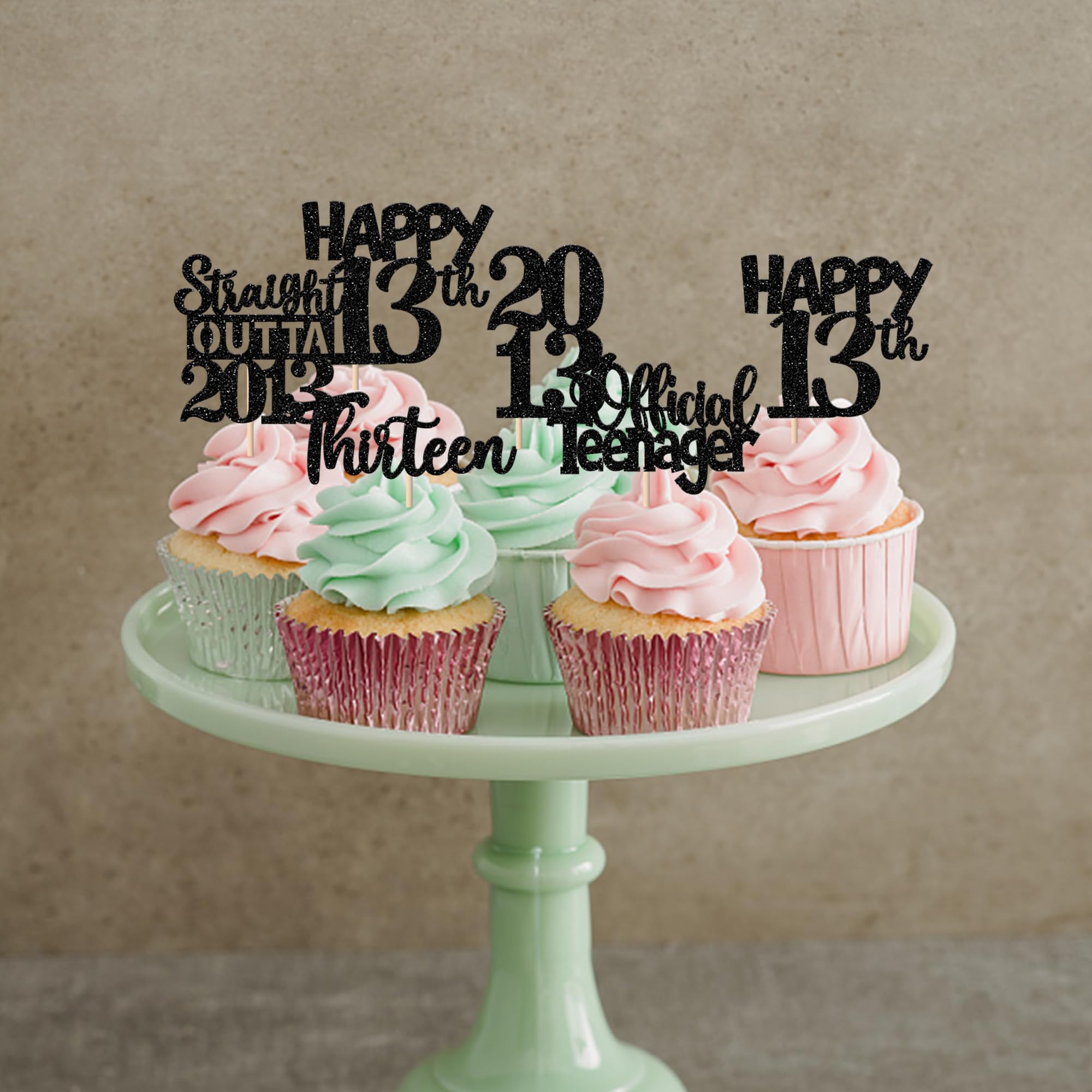 Straight Outta 2012 Cupcake Toppers for Happy 13th Birthday Anniversary Party Cake Decorations Supplies Perfect for happy 13th bithday theme party, straight outta 2012 theme party, 13th wedding anniversary theme party,cheers to 13 years theme party cupcake decorations supplies. Pack of 30 pcs,6 pcs of each design The size is 2.3*4.6/ 2.2*4.6/ 1.9*4.6/ 2.1*3.9/ 1.2*4.6 inch ( with stick ) Made of high quality paper card stock,thick and thick and sturdy. These cupcake toppers are single glitter, the back is white, and they are intended for decoration only, please do not put them in oven or microwave. If the item you received has any defects, please contact us immediately. we will deal with it within 24 hours.