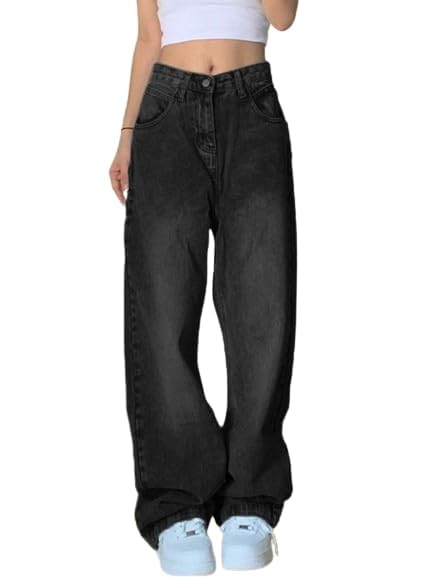 Vintage boyfriend jeans come with 4 traditional pockets. Intentionally distressed design in the pockets' edges, providing these women's jeans with both style and function. Y2k baggy jeans with zip fly, button closure and belt loops for your ease of use.