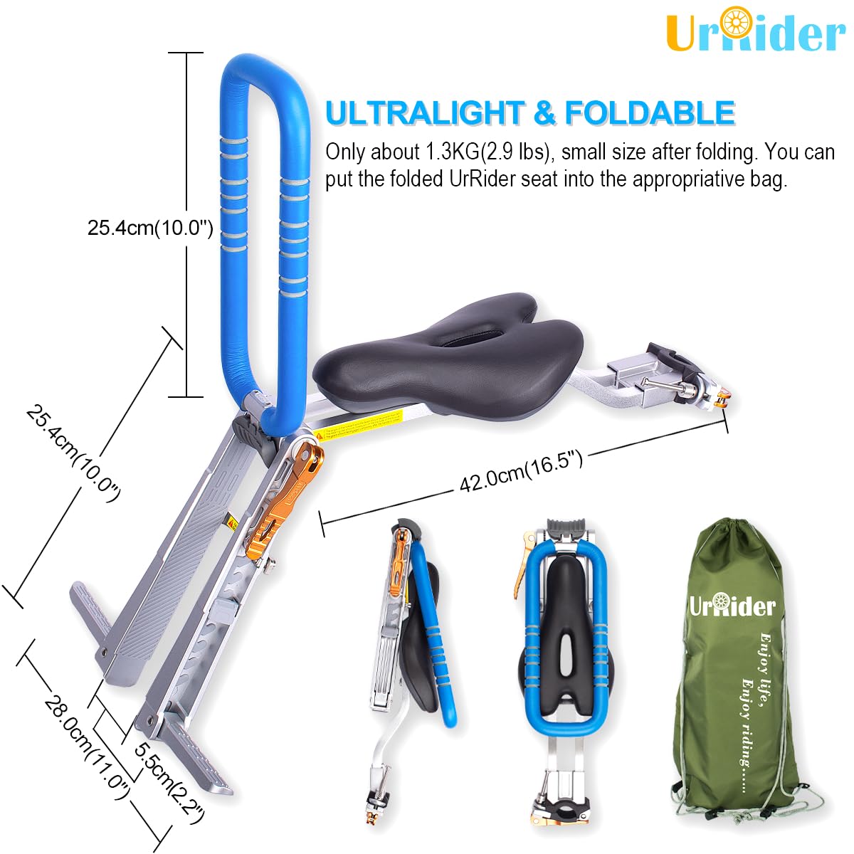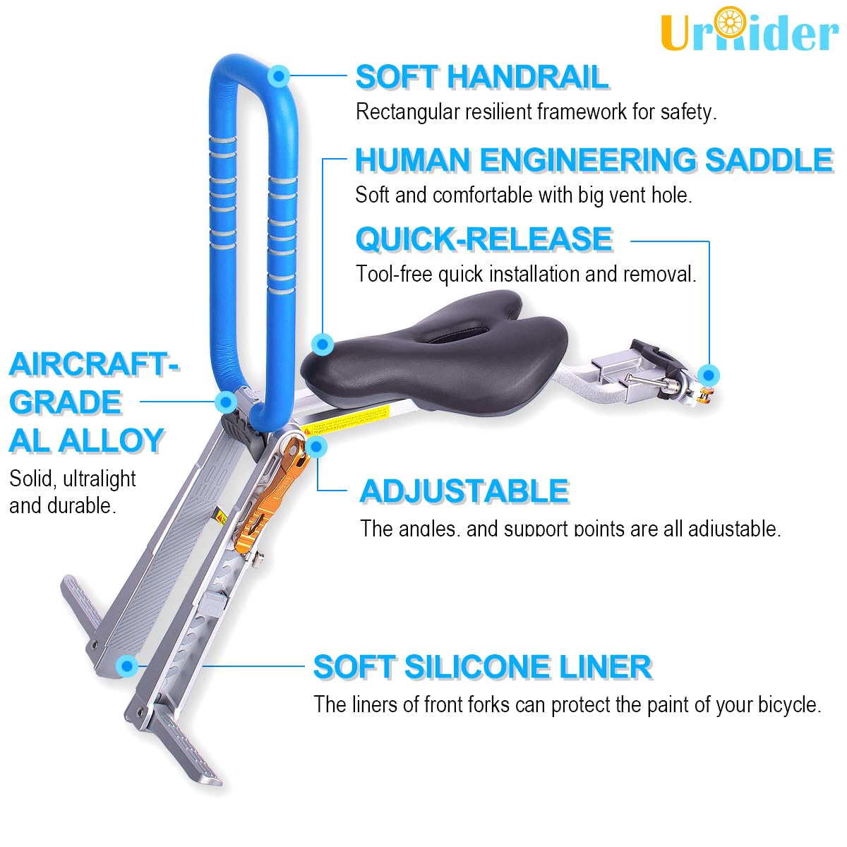 【EAEY INSTALLATION】 -- The UrRider child bike seat installs (60 secs) and removes (30 secs) effortlessly, no tools required. Kids bike seat for front of bicycle, Mountain Bikes, Hybrid Bikes. (Note: Check compatibility with size guidelines.)