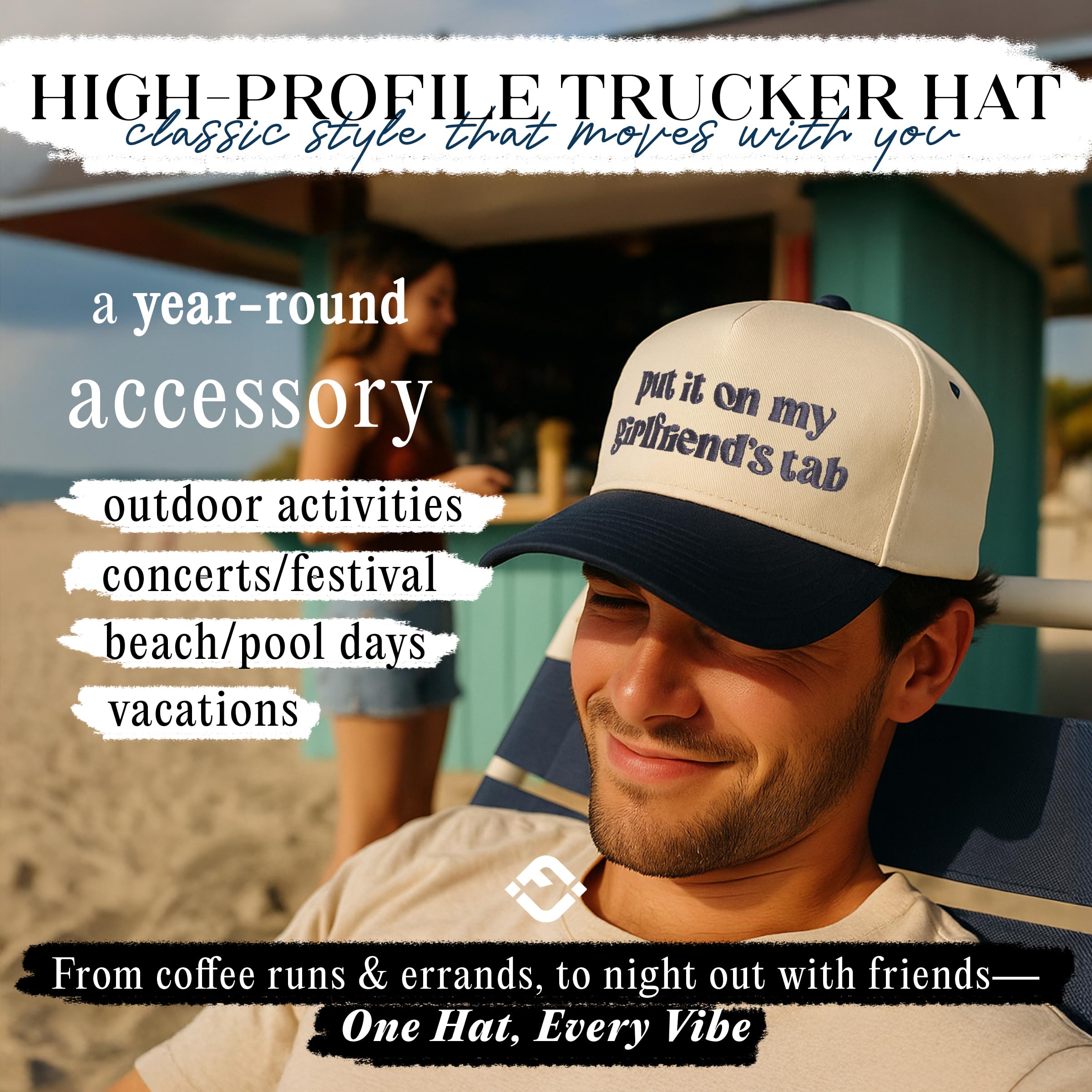 STYLISH COUNTRY CHARM: This country trucker hat combines timeless style with a playful twist, featuring a retro "Put It on My Tab" for those special people in your life with a good sense of humour and even better checkbook (LOL). Its two-tone design is perfect for adding a fun, laid-back vibe to casual outings, outdoor adventures, or family get-togethers.