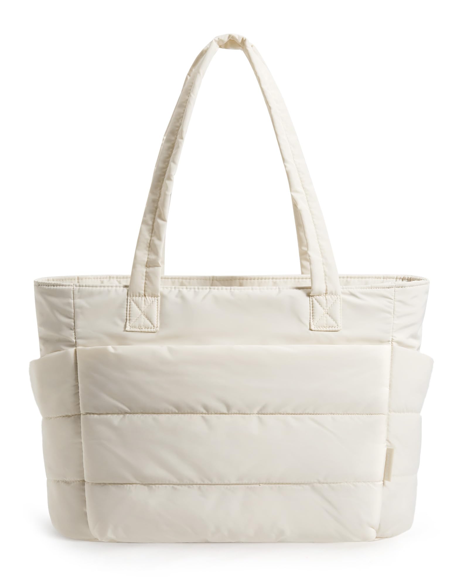 Ultra Lightweight Material : Standard Size and Slim Size weighs only 0.99 pounds. Small Size weighs only 0.79 pounds. Made of durable, soft and light taslan fabric. The puffer tote bag is easy to carry. Good choice of travel bag.