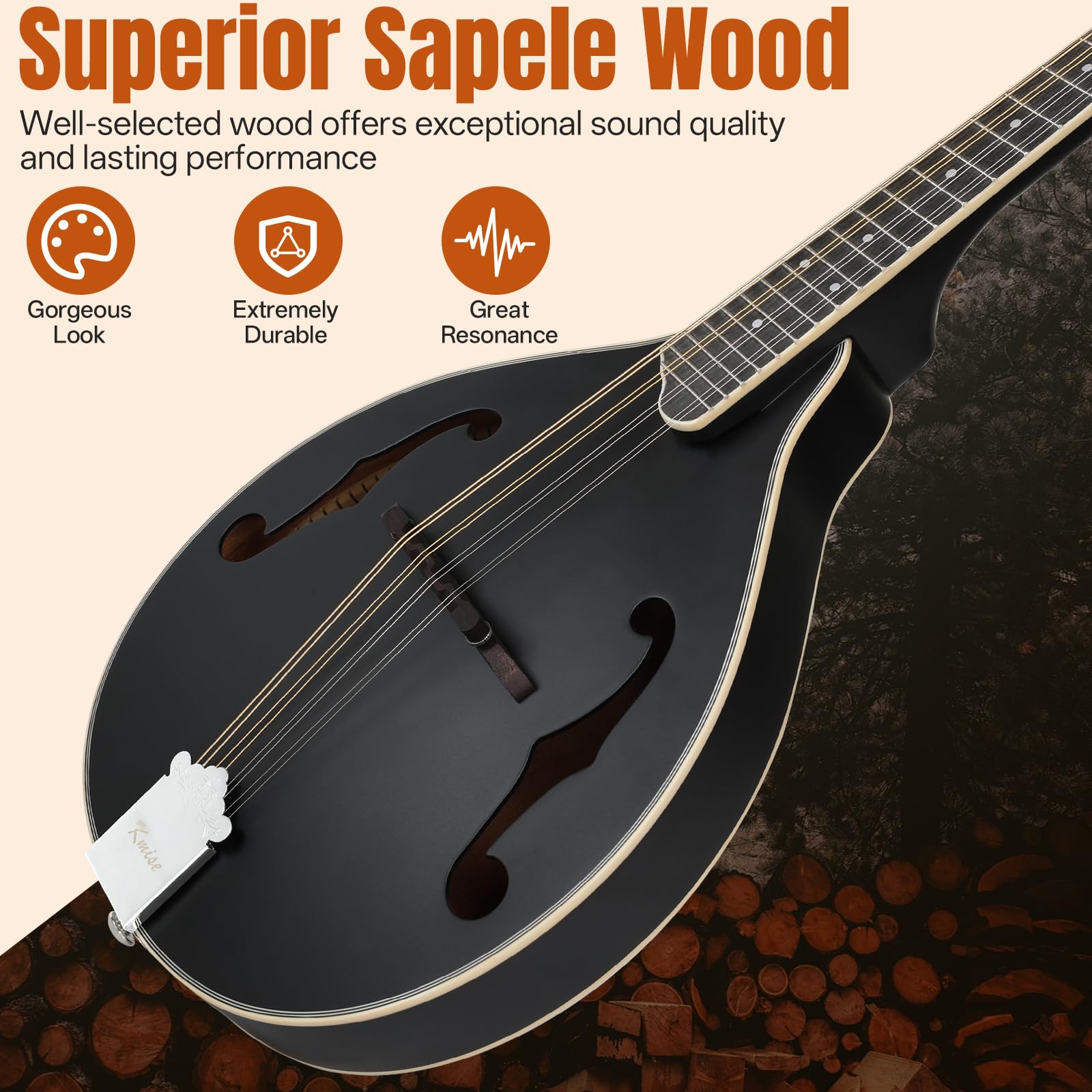 Easy to Play & Tune: Featuring open-style metal tuning pegs, this mandolin musical instrument combines a classic, elegant design with simple, precise tuning. The pre-installed, multi-layer pickguard helps protect the body from wear and tear, making it an excellent choice for beginners and first-time players.