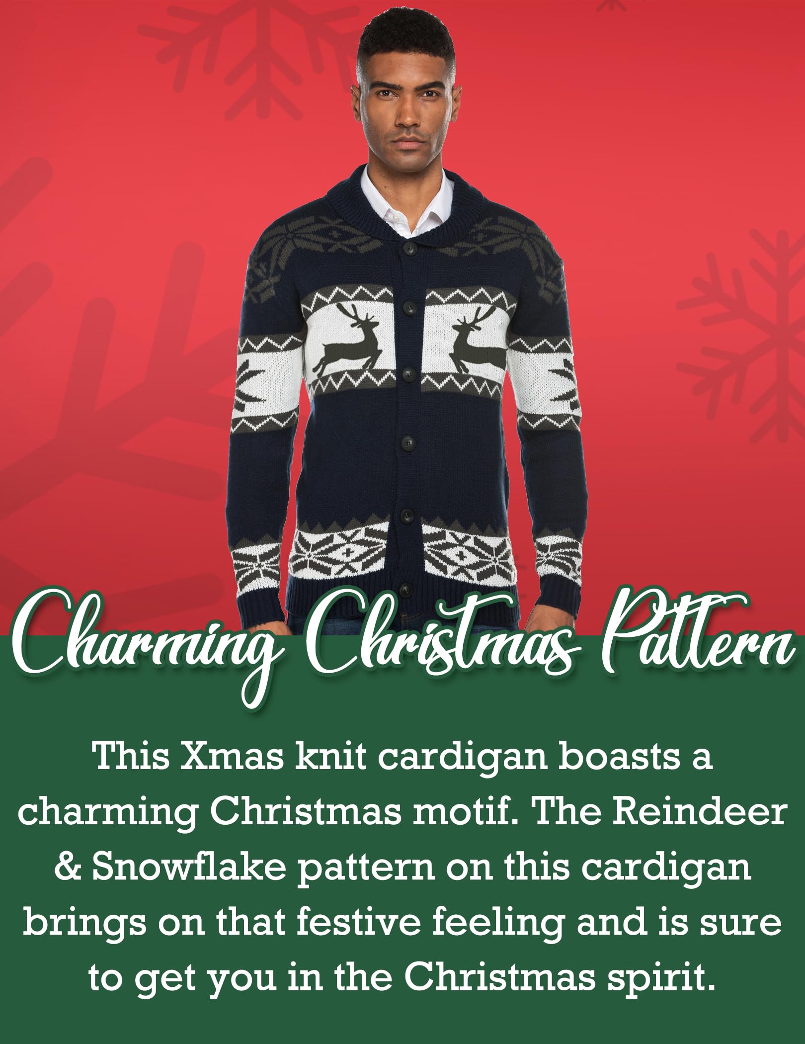 CHARMING CHRISTMAS PATTERN - This Xmas knit cardigan boasts a charming Christmas motif. The Reindeer & Snowflake pattern on this cardigan brings on that festive feeling and is sure to get you in the Christmas spirit.