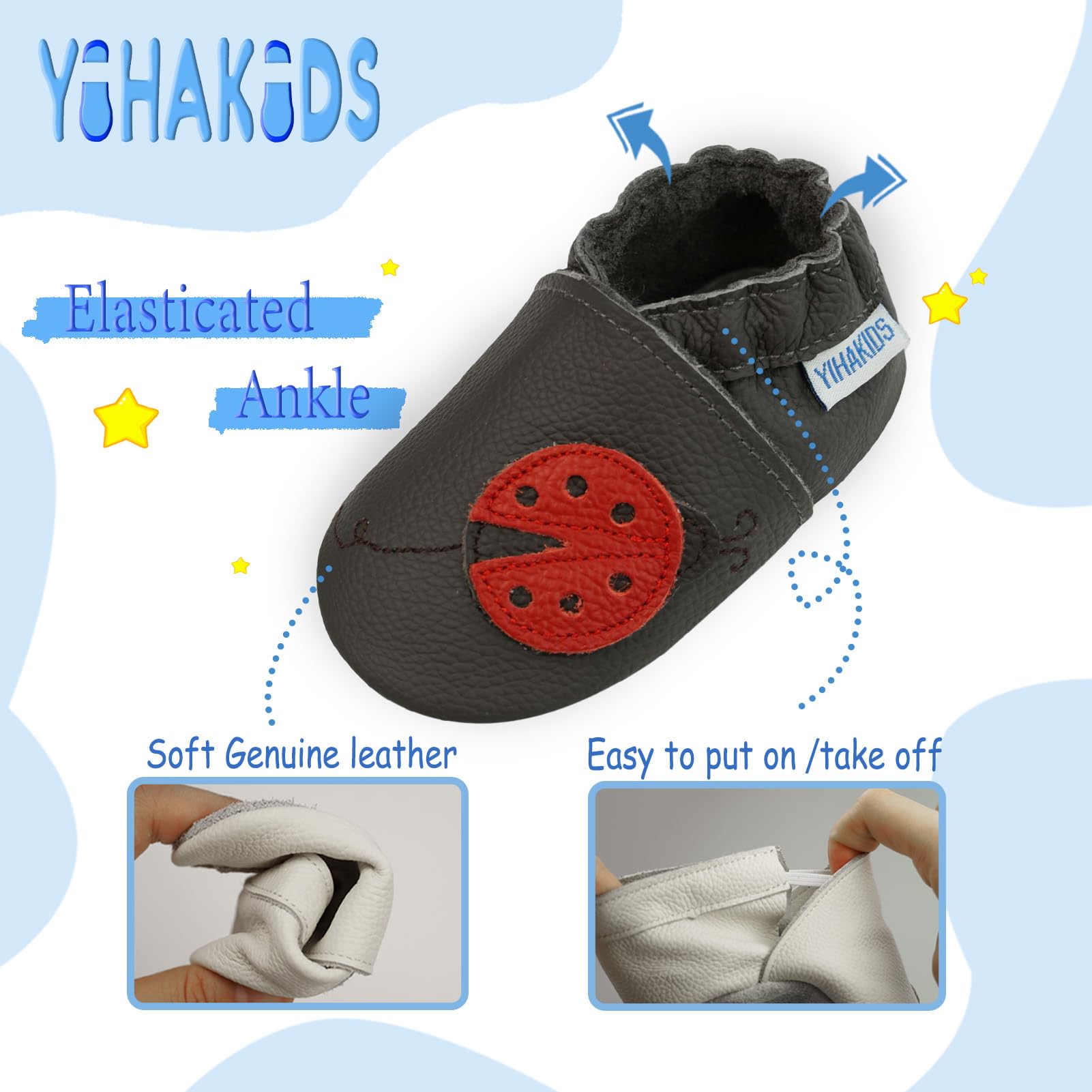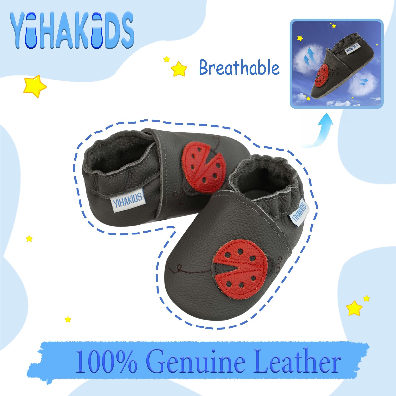 YIHAKIDS baby leather shoes are made of soft genuine cowhide leather with a non slip suede sole, providing a great grip on the floor.
