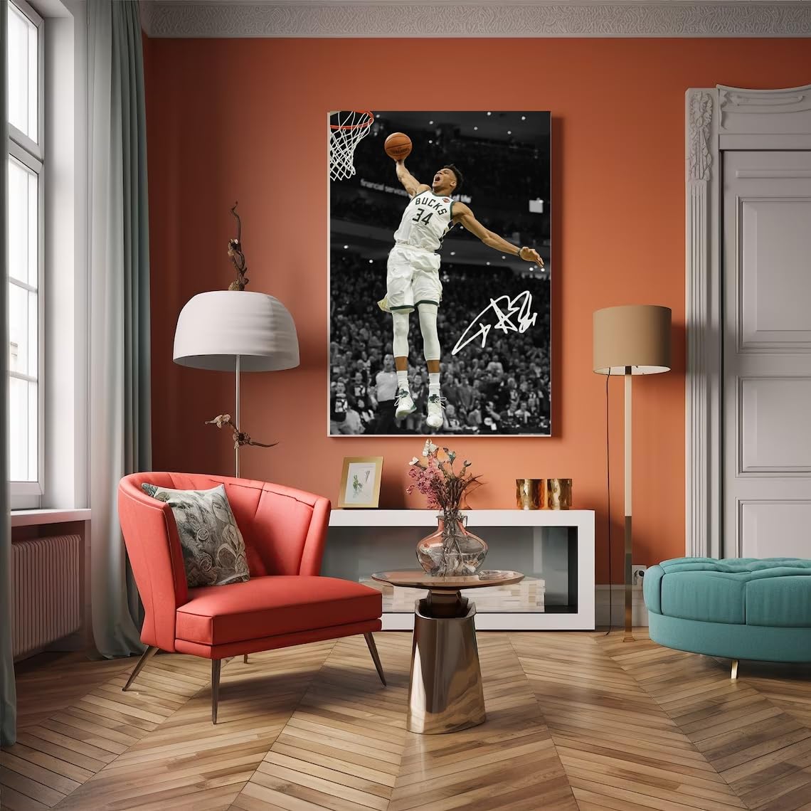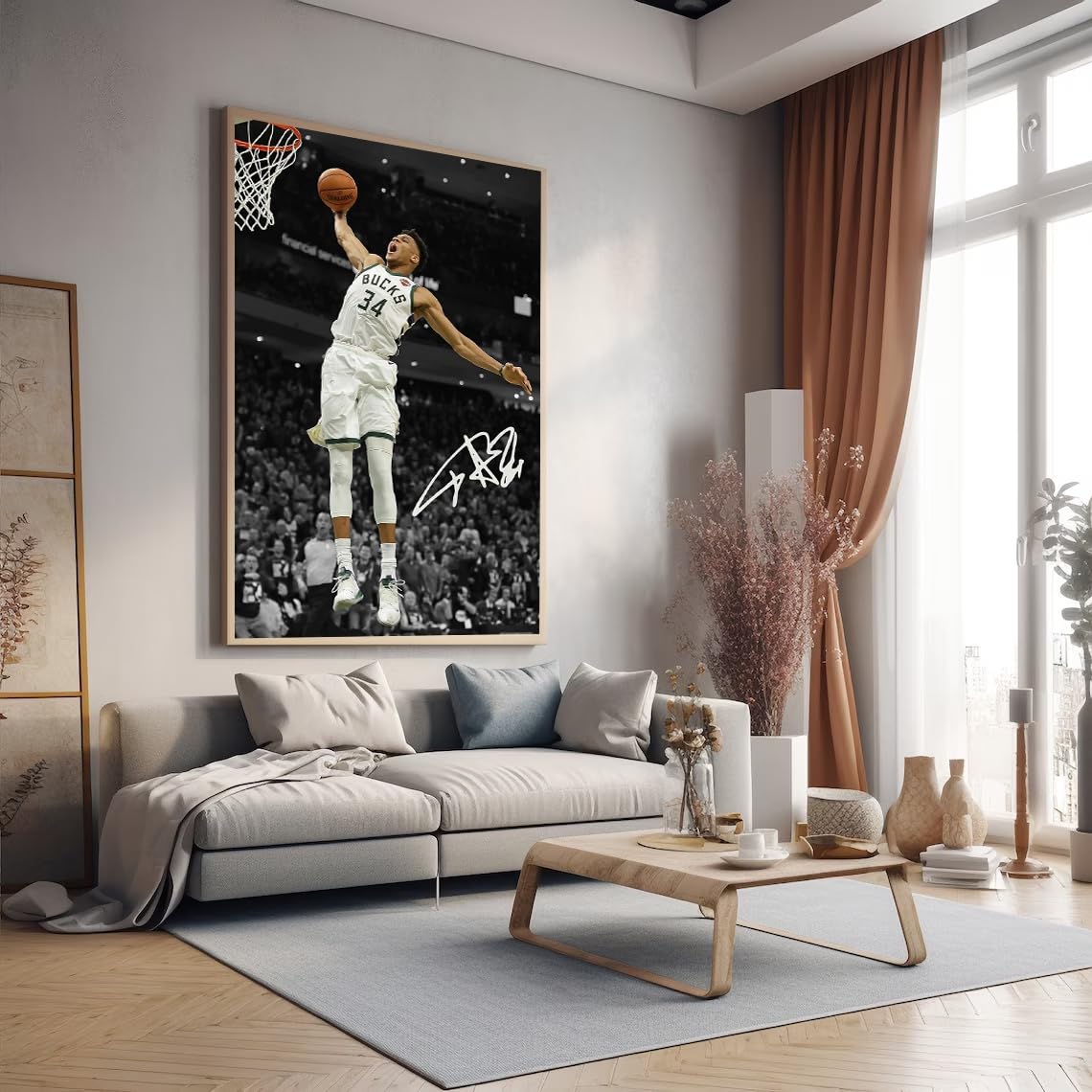 Canvas Rolls: If You Choose Canvas Rolls, Please Note That We Will Roll The Canvas And Ship It To You, It Will Not Appear On The Frame. The Image Is The Effect Of Installing The Frame. High-Quality Canvas Hd Pictures, Durable And Waterproof. Giannis Antetokounmpo Signed Poster The Vivid Scenes Will Illuminate Your Walls. Can Make Your House Look Vibrant And Creative.