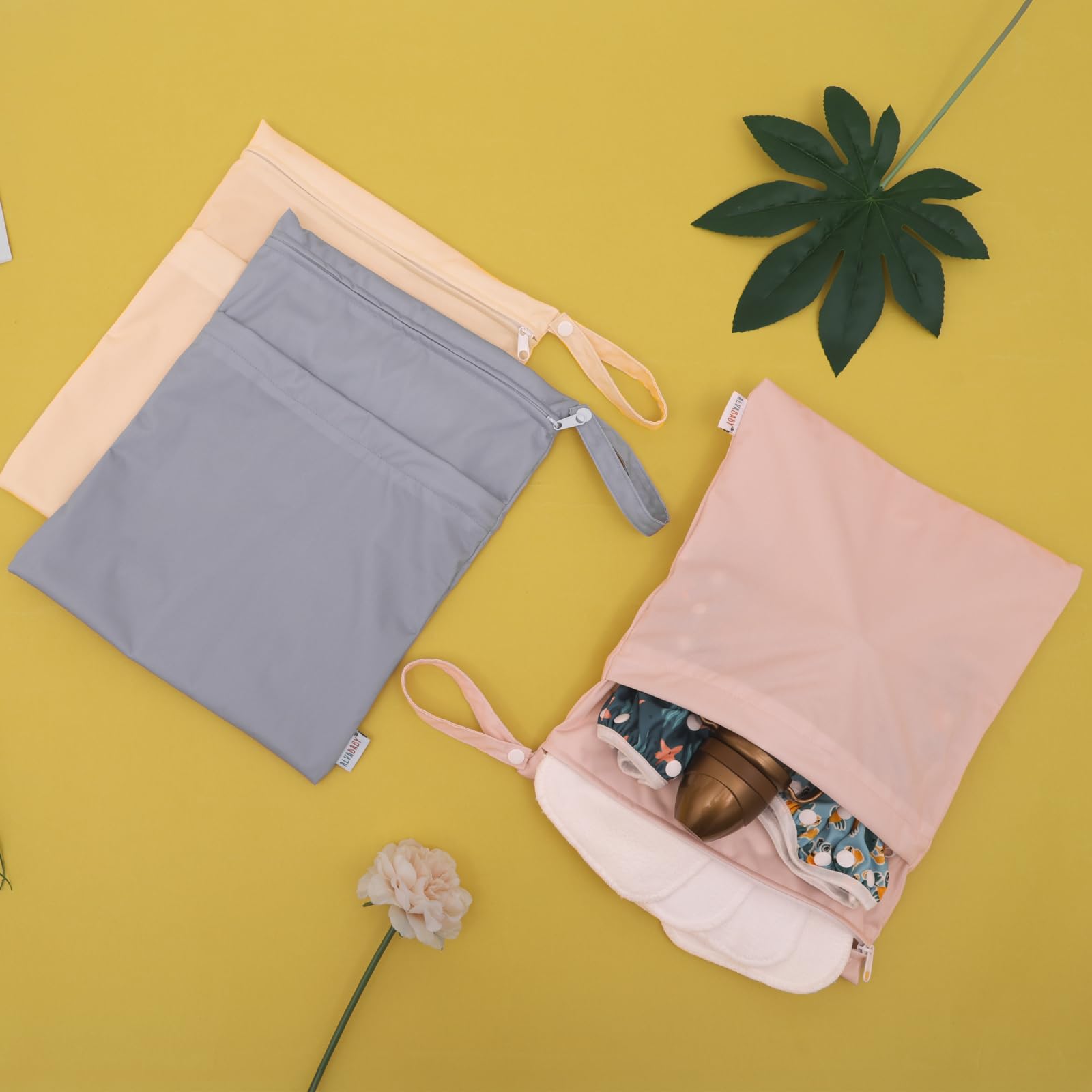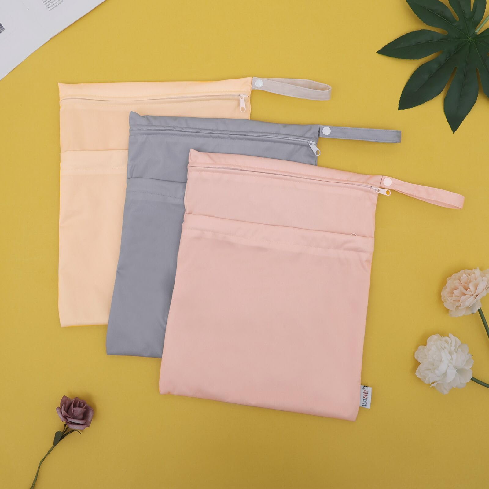 Fashion , Reusable&Waterproof , High quality -A trim and attractive design. ALVABABY wet/dry bag are made from waterproof polyester, put dirty cloth diapers in a wet bag. Comes with handle for easy carrying or attaching to your diaper bag or stroller.
