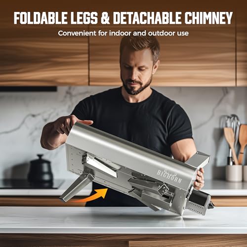 Solid Pizza Oven: Crafted from durable stainless steel, this pellet pizza oven features a wooden door handle, an upgraded pellet hopper for easy refueling, and a 12-inch pizza stone included for perfect cooking results, all with foldable legs and simple assembly for added convenience