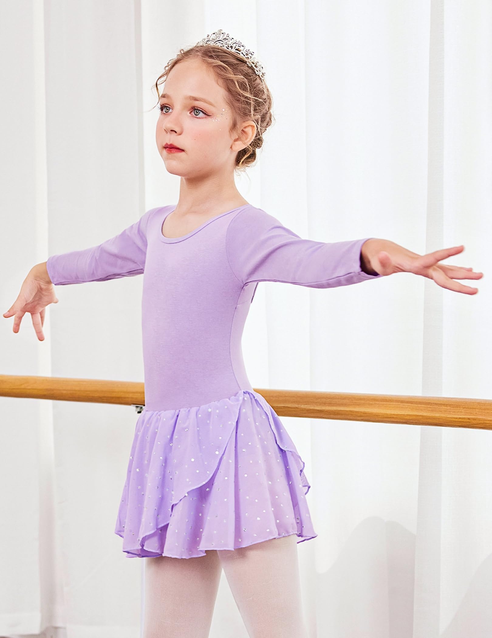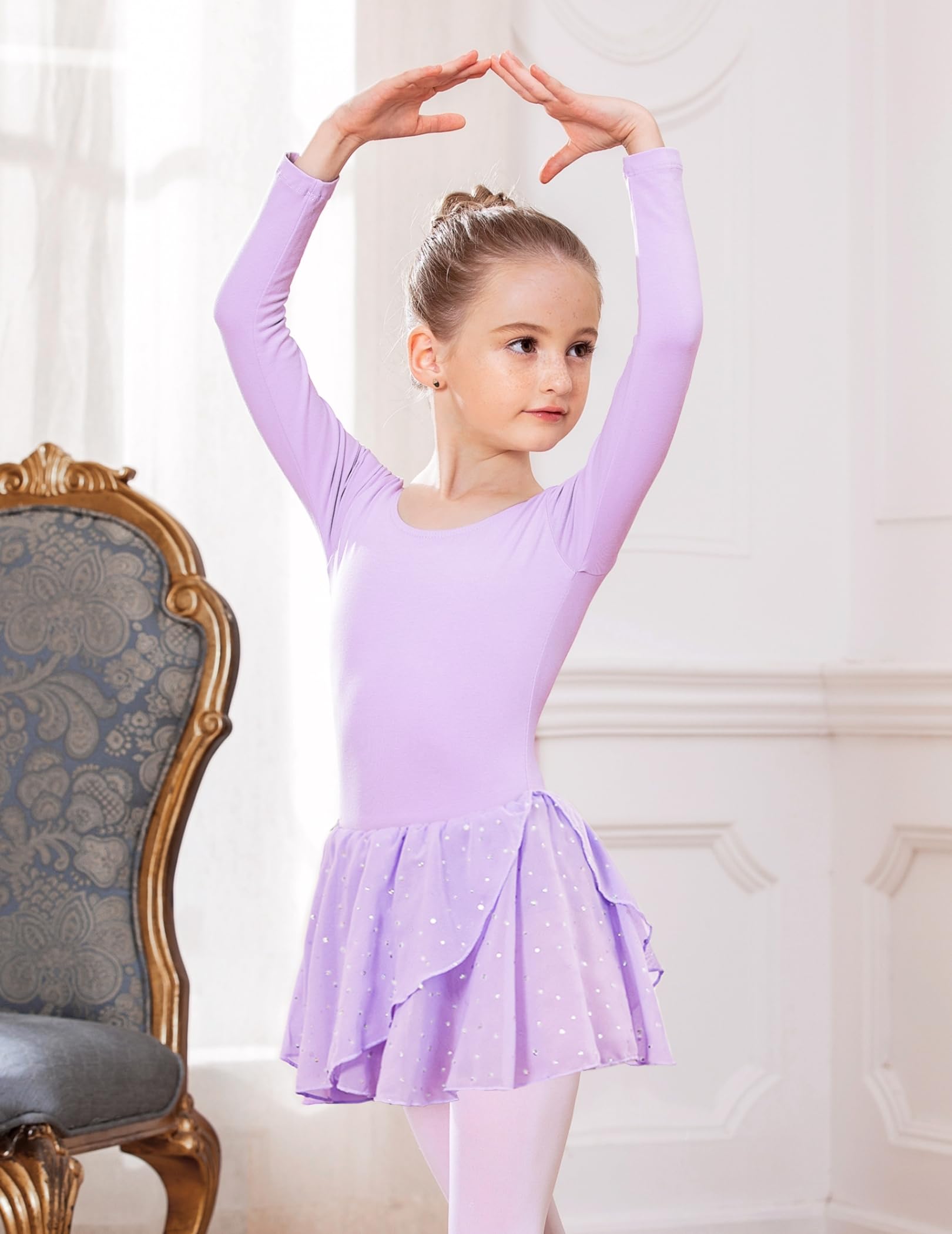 Suits:Unique long sleeve skirted leotard, great for dance, ballet, cheer leading, stage perform and dress up. Ballet Clothes also is a nice choice as holiday gift for little girls, like Christmas, Halloween, New Years, Back to Schools