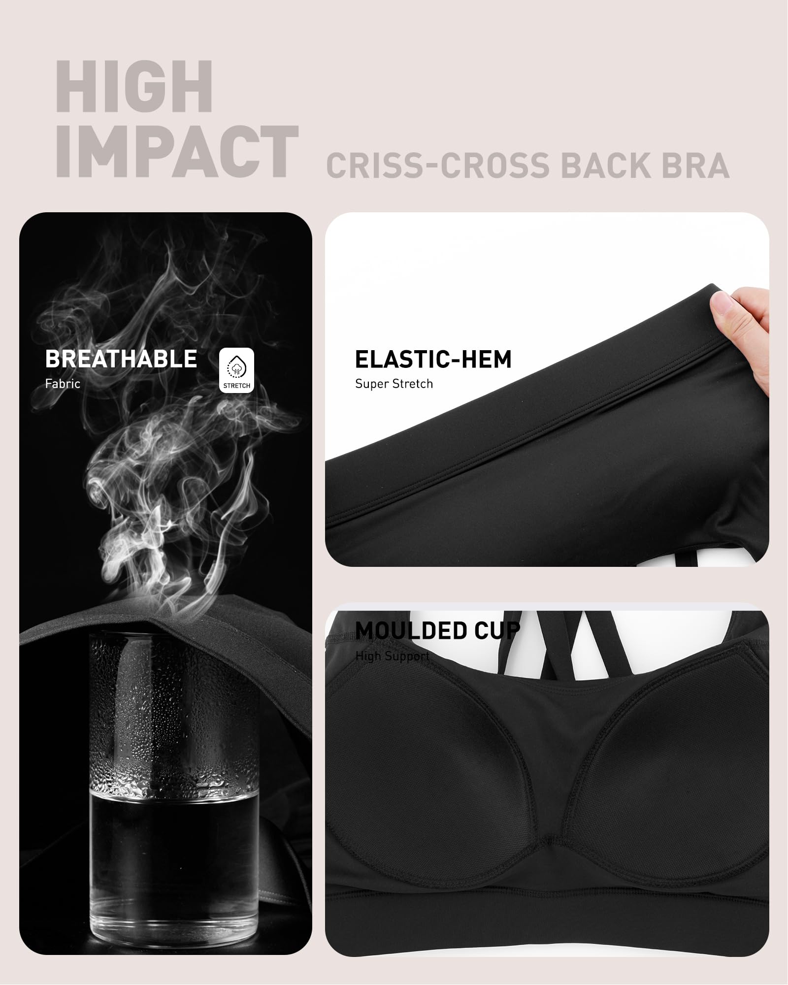 ✅ 【Supportive Sports Bra】:Intense workouts call for extra support. RUNNING GIRL Sports Bra is strategically designed to deliver support and tailored for high impact activities like running, jumping and full body workouts.Featuring Criss-cross Straps, Buttery-Soft Fabric,brushed elastic band detail.