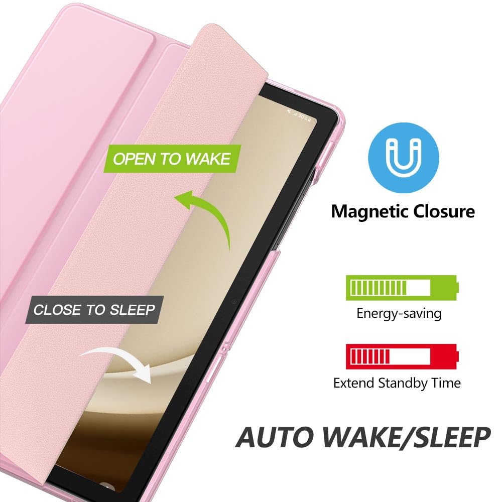 Auto Wake/Sleep: Built-in magnetic strip, automatically wakes or puts your tablet to sleep when the lid is opened and closed. this Tab A9 Plus Case Protects and extends battery life