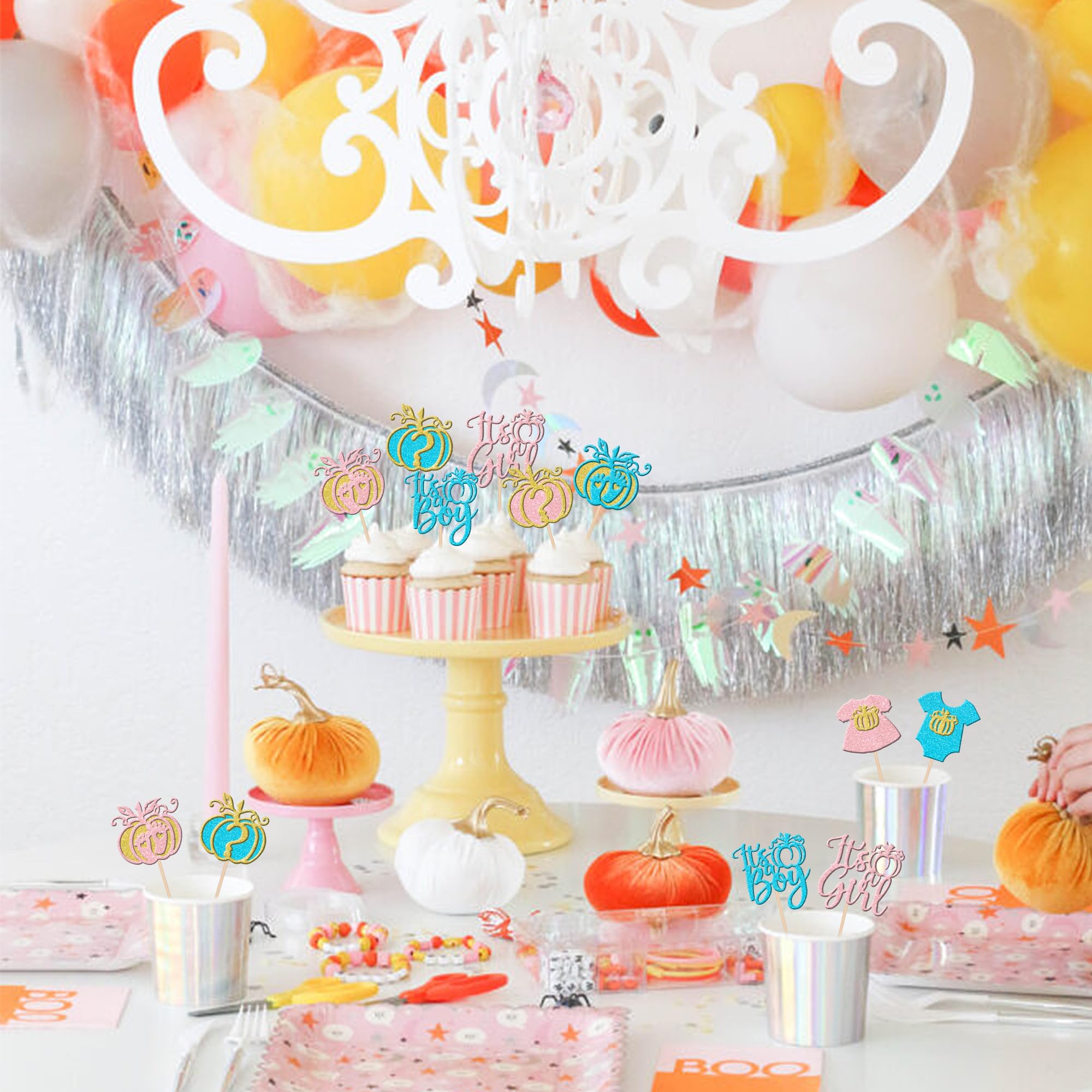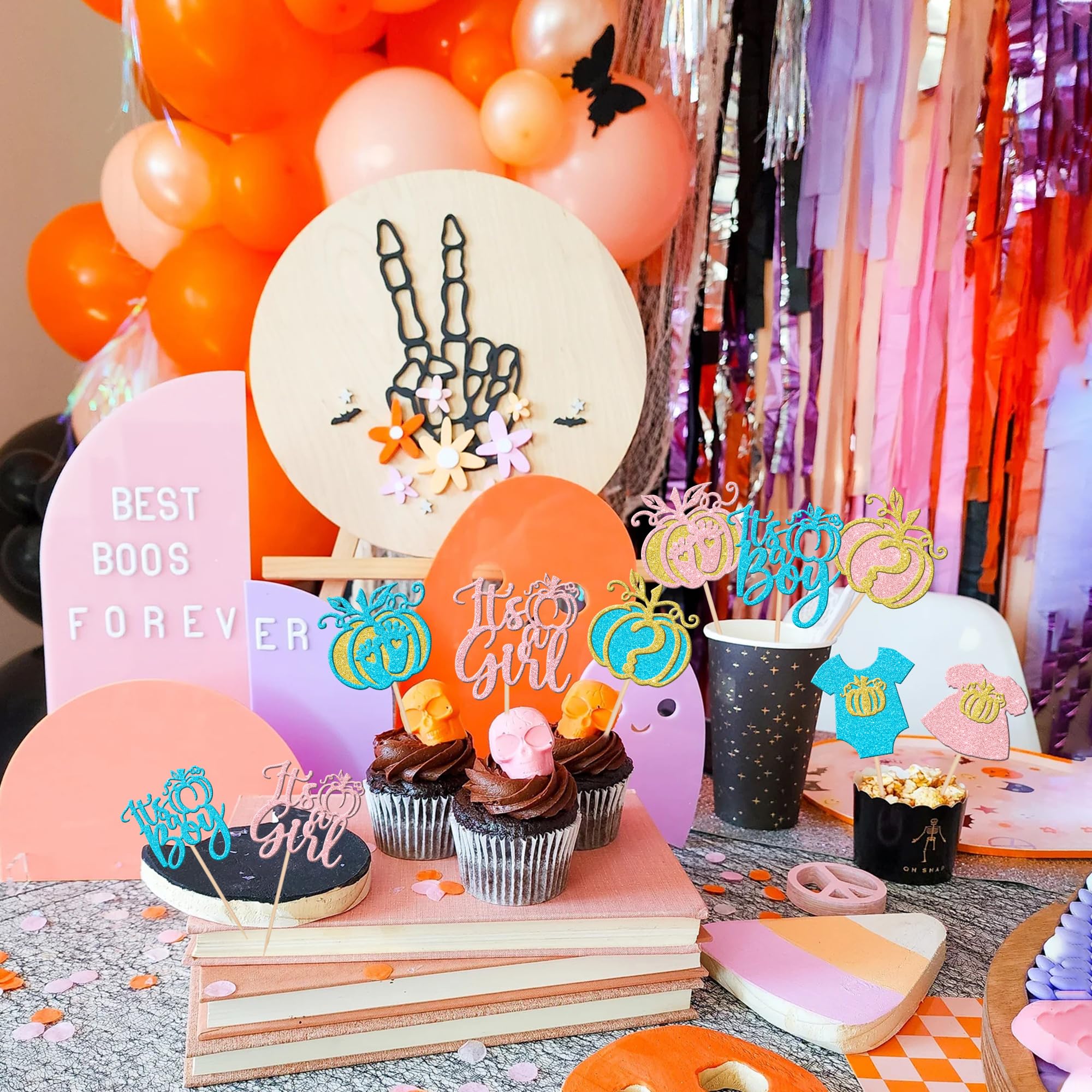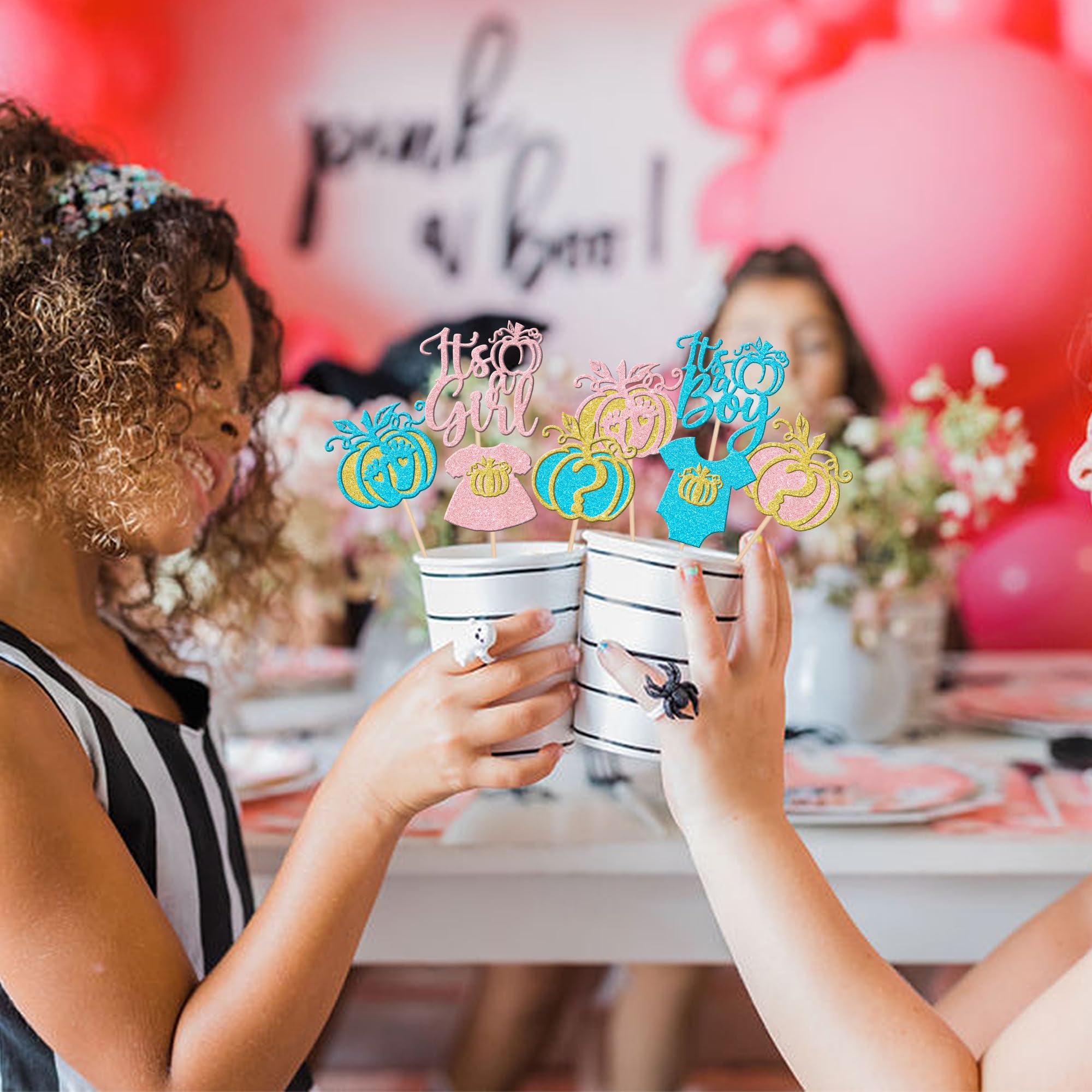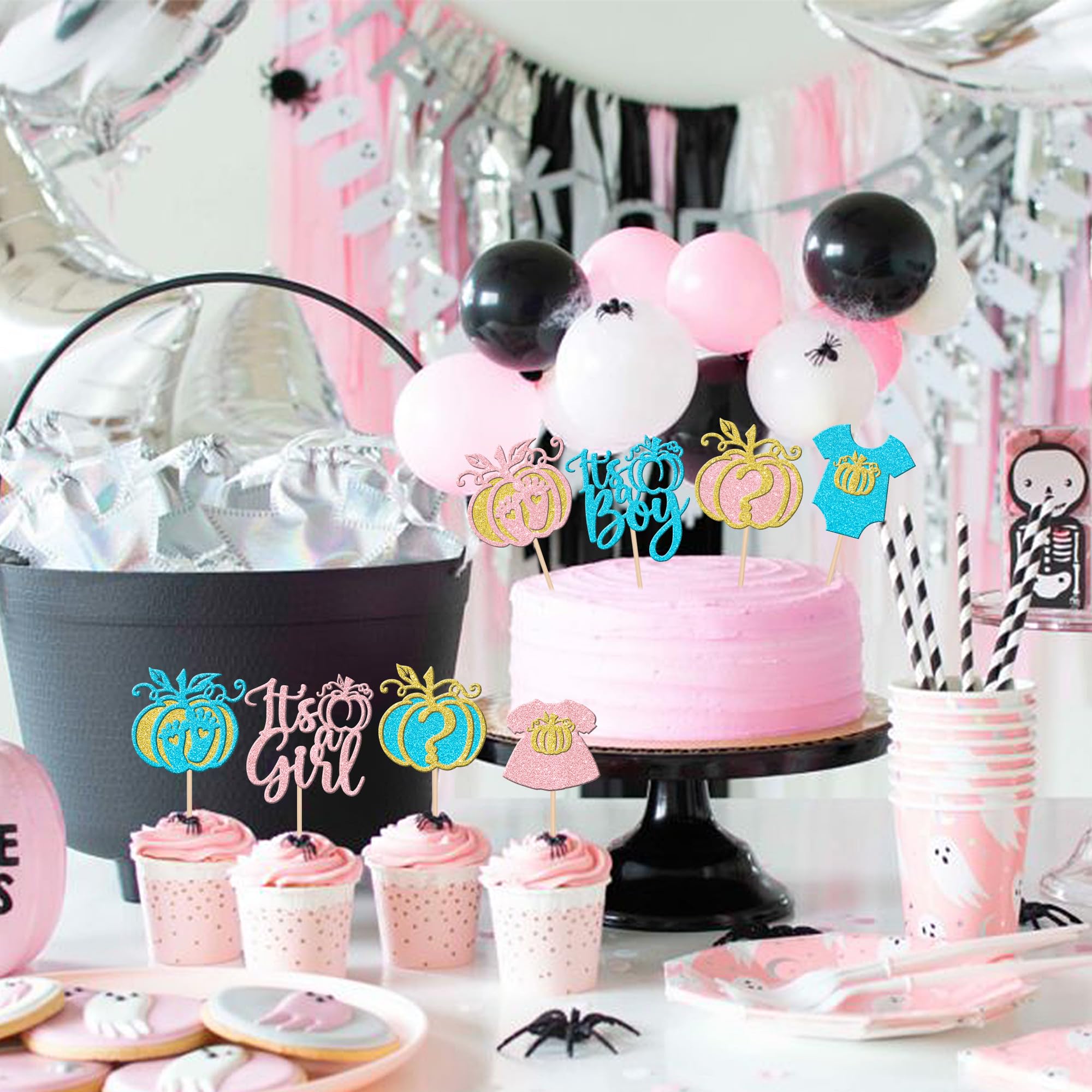 24 PCS Pumpkin Gender Reveal Cupcake Toppers Boy or Girl Cupcake Picks Pink or Blue Baby Feet Pumpkin Cupcake Decoration for Baby Shower Gender Reveal Kids Birthday party Cake Decorations Supplies Perfect for gender reveal theme party, baby feet onesie pumpkin theme party, boy or girl theme party , he or she theme party, pink or blue theme party, baby shower theme party, it's a boy it's a girl birthday theme party cupcake decorations supplies. Pack of 24 pcs, 3 pcs of each design. The size is 1.2 *5.1 inch ( with stick ) Made of high quality paper card stock and food grade sticks,thick and sturdy. These cupcake toppers are single glitter, the back is white, and they are intended for decoration only, please do not put them in oven or microwave. If the item you received has any defects, please contact us for refund.we will deal with it within 24 hours.