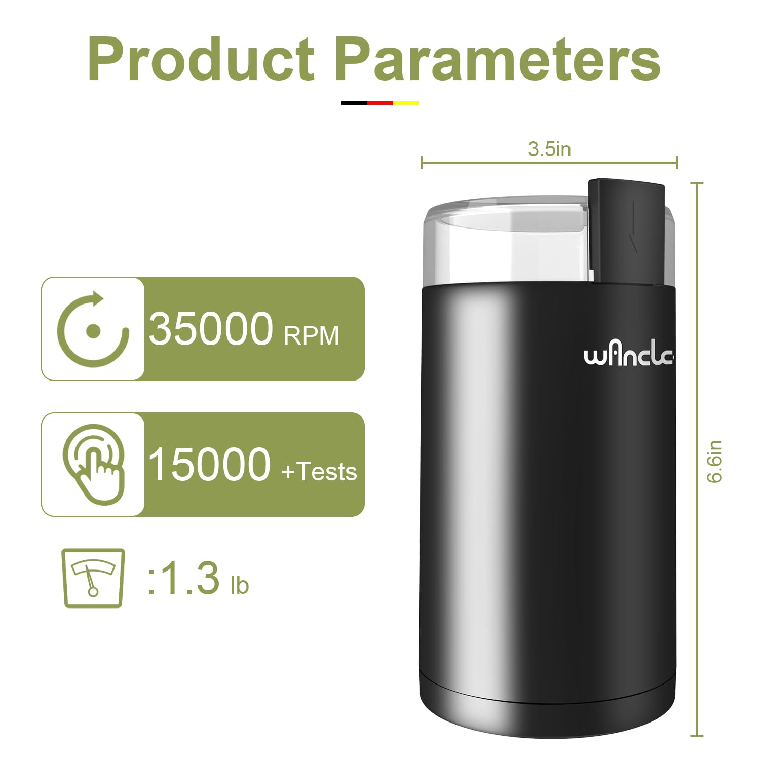✅【Save Your Precious Counter Space】Wancle coffee grinder offering a wide range of abilities. Excellent stainless steel blade chops ingredients through rapid spinning, so it not only works well with coffee beans but also works spice, seed, nut, herb.