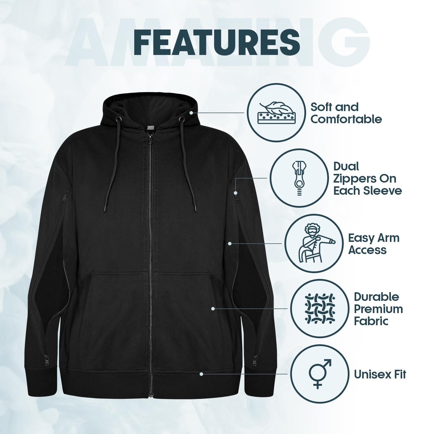 DIALYSIS CLOTHING STAY WARM & COZY: Our premium oversize zipper blanket hoodie is designed to keep you warm and comfortable during dialysis treatments with its soft and cozy fabric.
