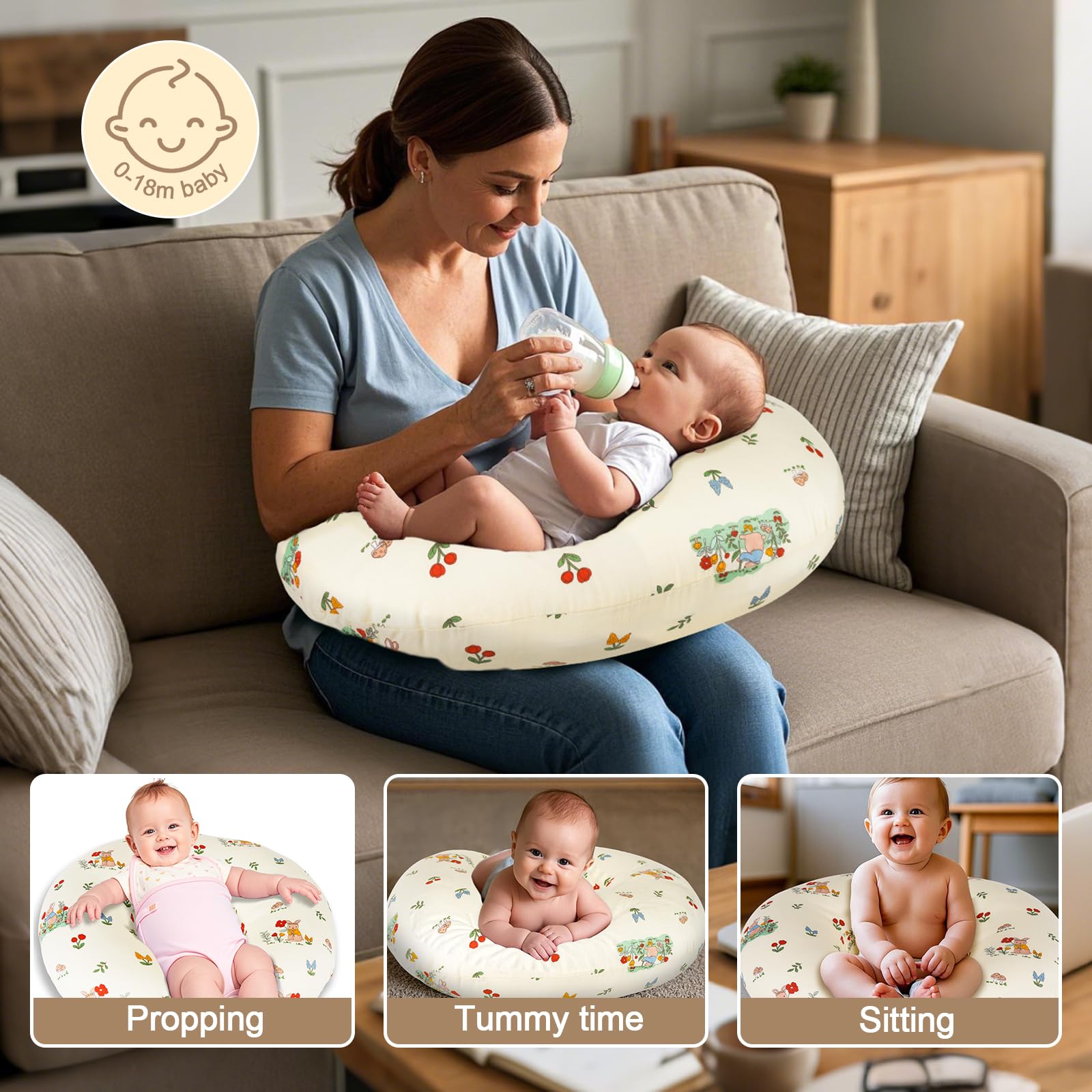 100% Cotton Cover. Nursing pillow cover is detachable for easy cleaning. The pillow filling is adjustable for personalized height and comfort