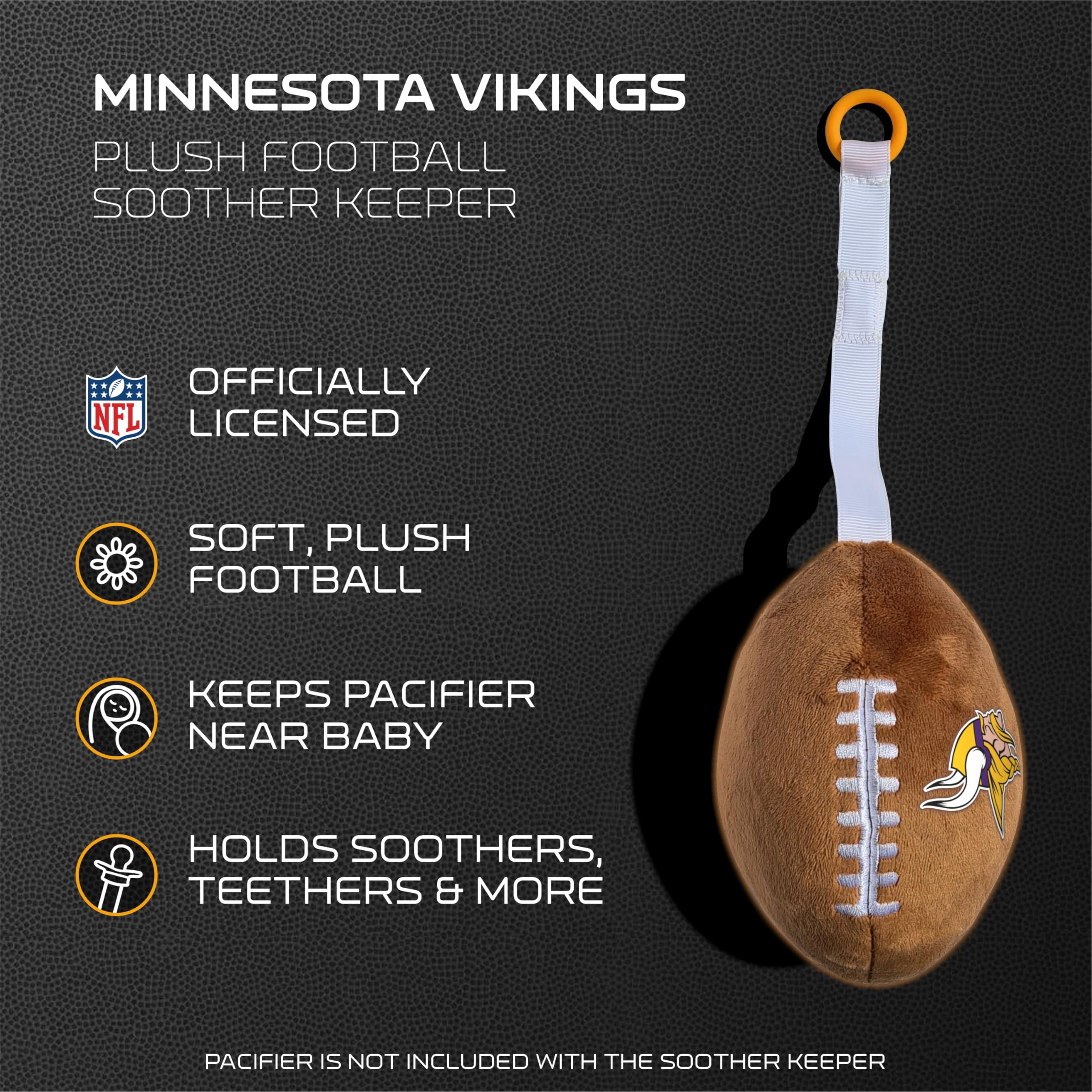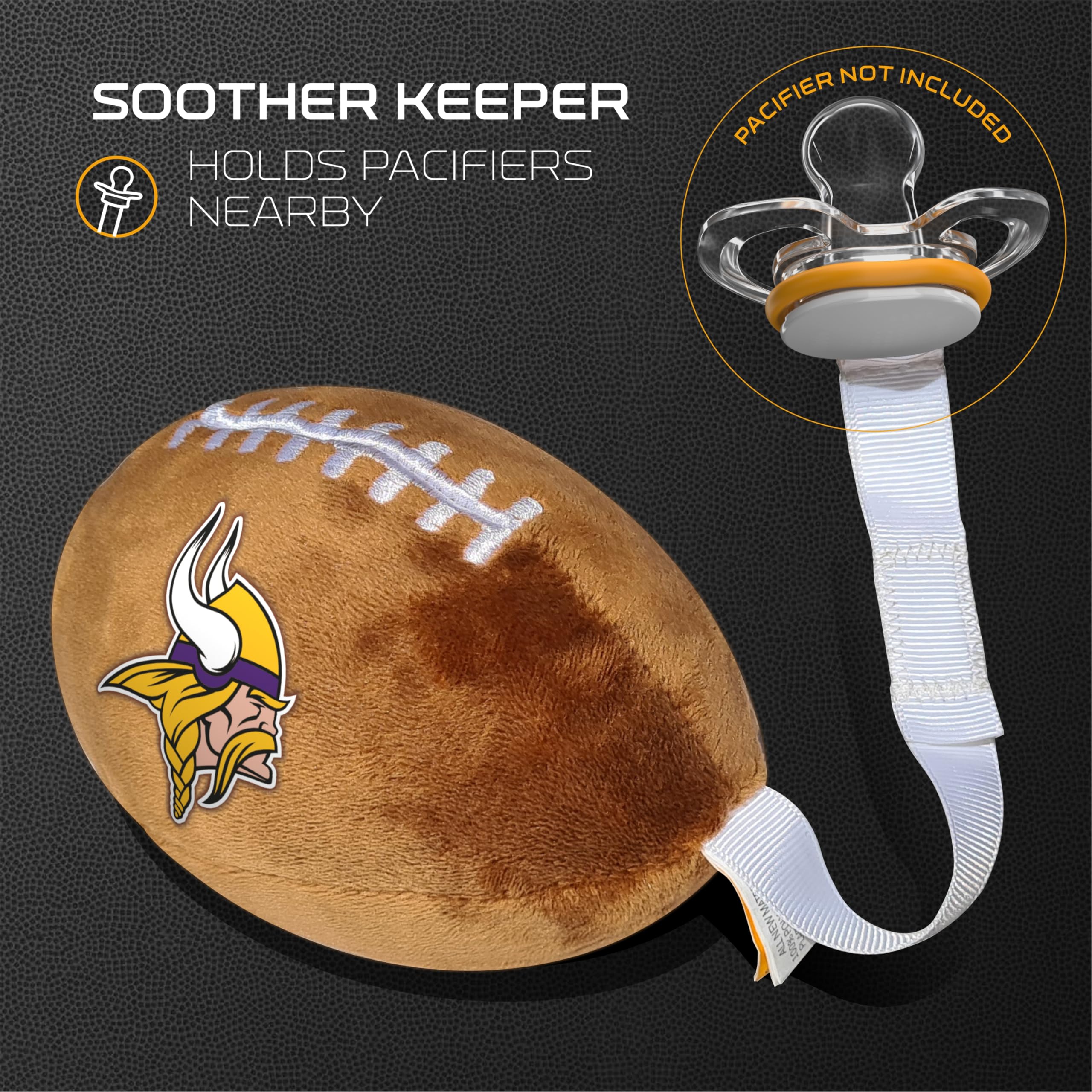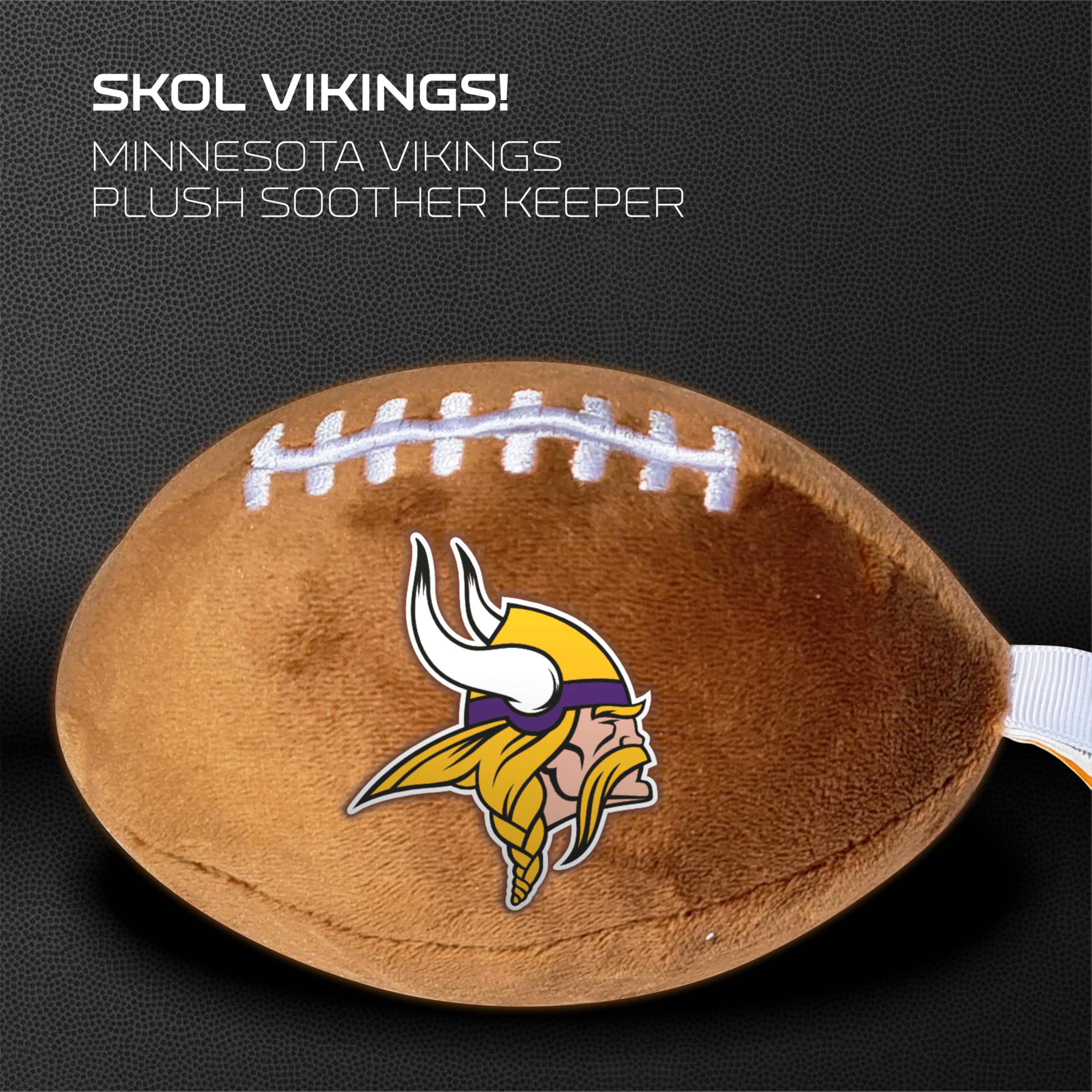 Skol Vikings! Official NFL Licensed product β Play like the pros with this soft and safe plush football pacifier holder β perfect baby gift for young fans to show team pride with comfort, style, and spirit! All 32 NFL teams are available.