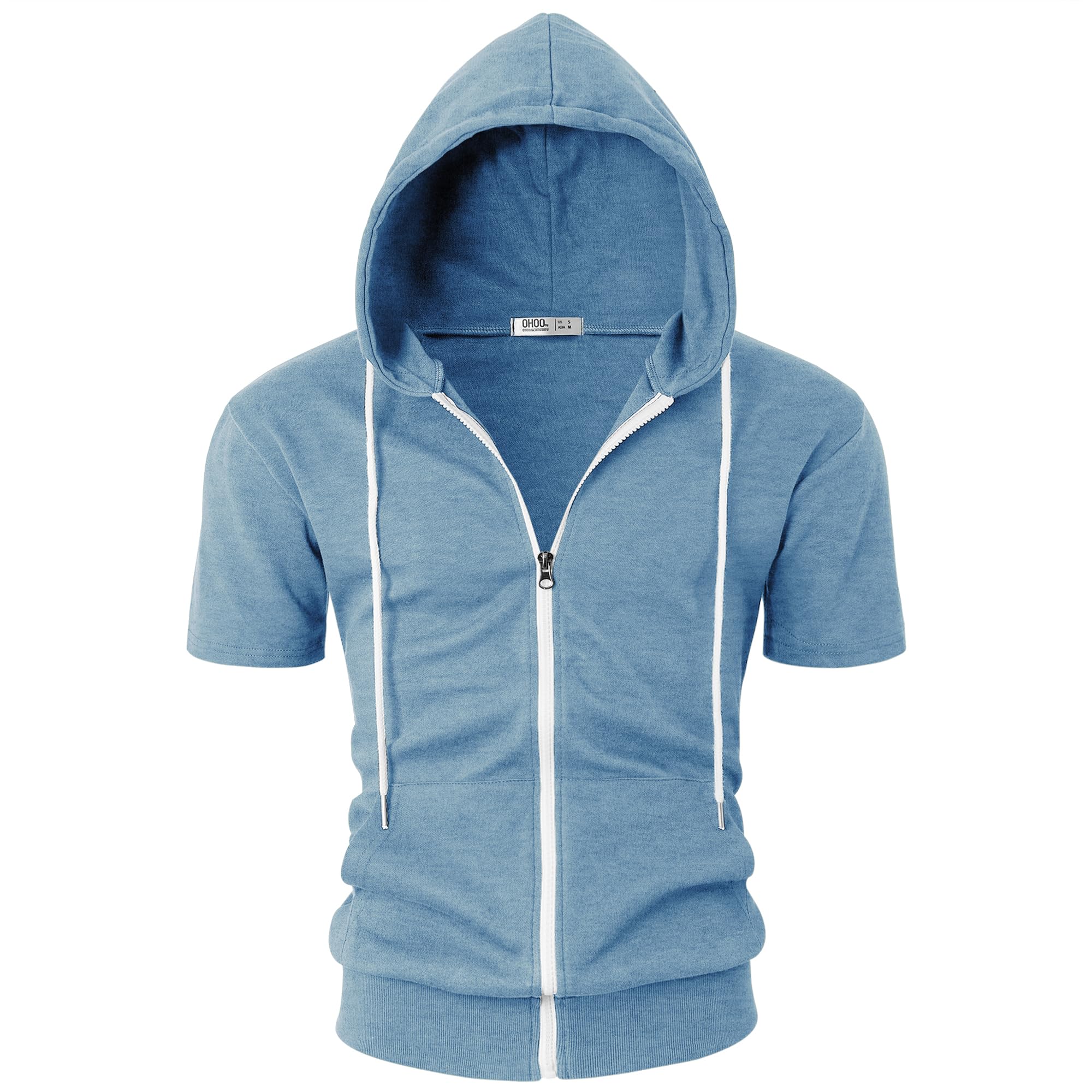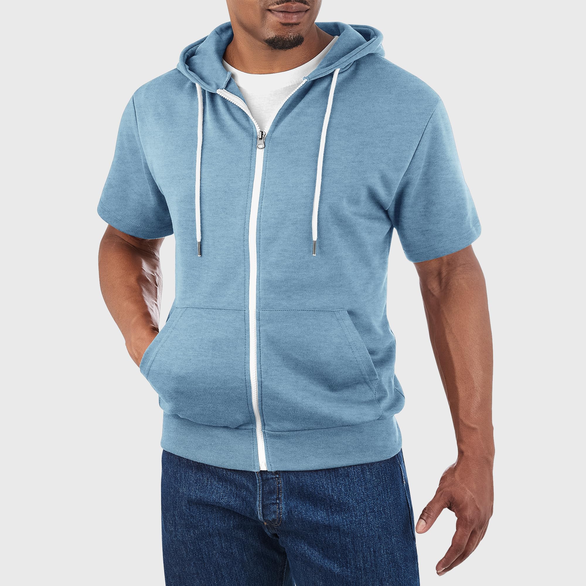 Model Number DCF007: Modern Slim Fit, Lightweight, Short Sleeves, Kangaroo Pocket for Convenience, Contrast Color Design (White Zipper/Drawcord)