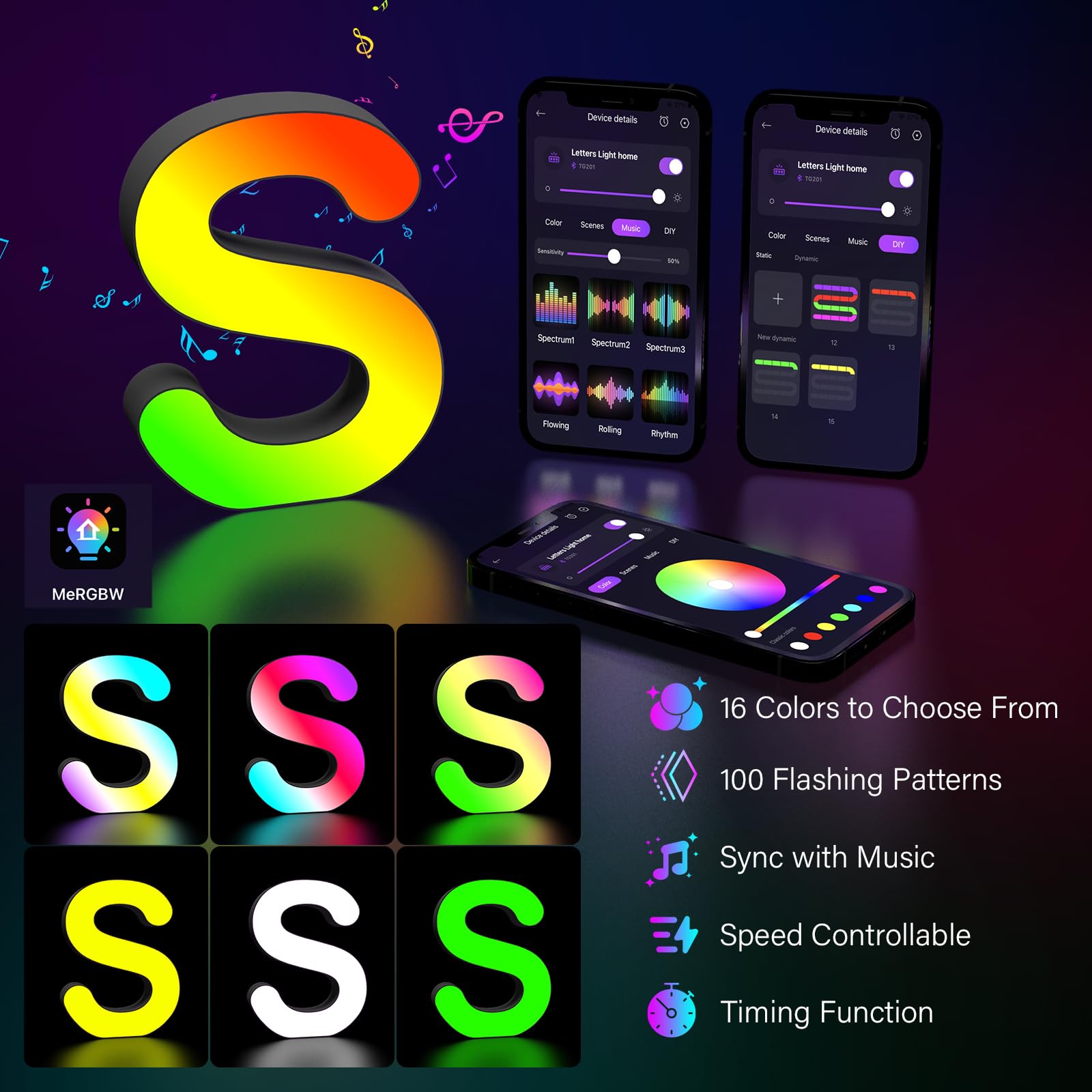 Smart APP Free DIY: The LED letter lights can be freely controlled by remote control or smart APP, with hundreds of different colors and rhythmic light effects. The LED lights are colorful, durable, and have adjustable brightness. You can also DIY your own unique colors and combinations to suit the atmosphere of the room
