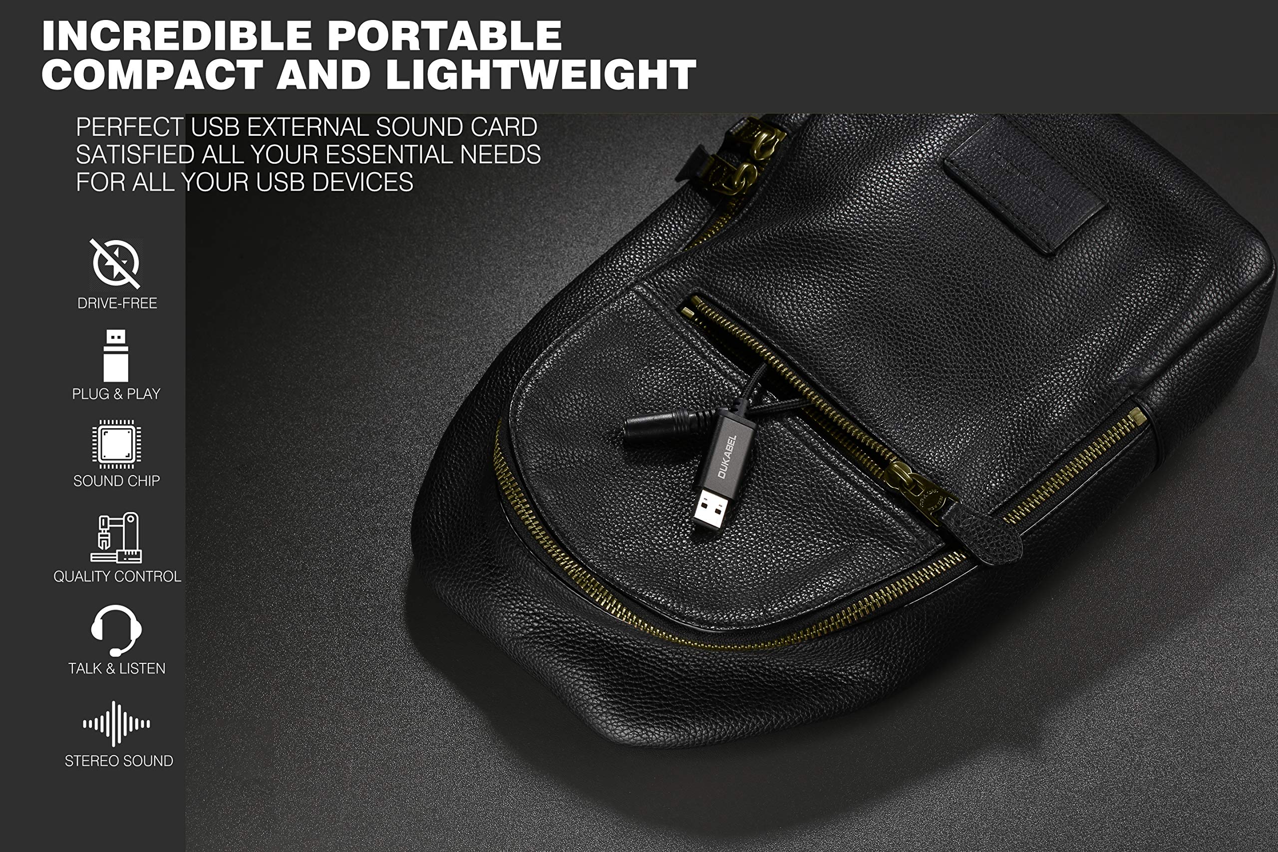 Smart Chip: The usb external sound card is built-in with DUKABEL's exclusive advanced chip for the better listening experience. Efficiently Decoding the signal of sound, and optimizely amplifying the analog signal to make a much clear sound. For optimize experience, we recommend to use with DuKabel cables.