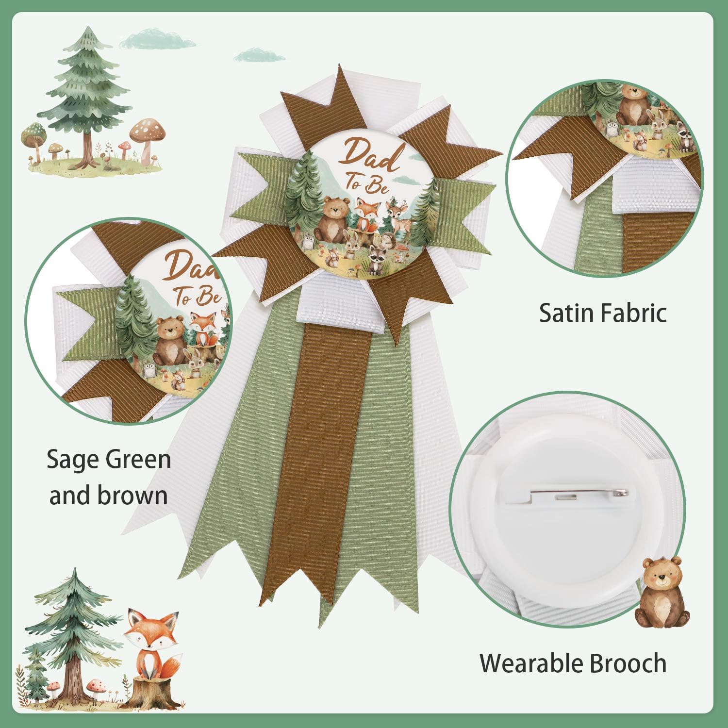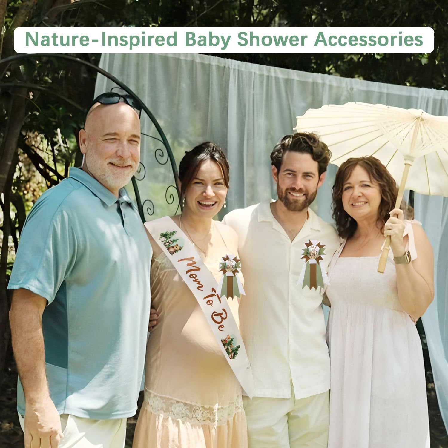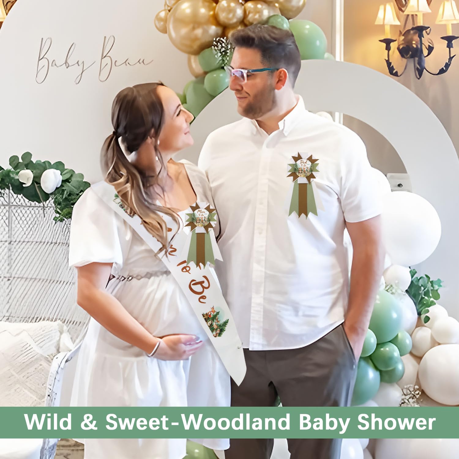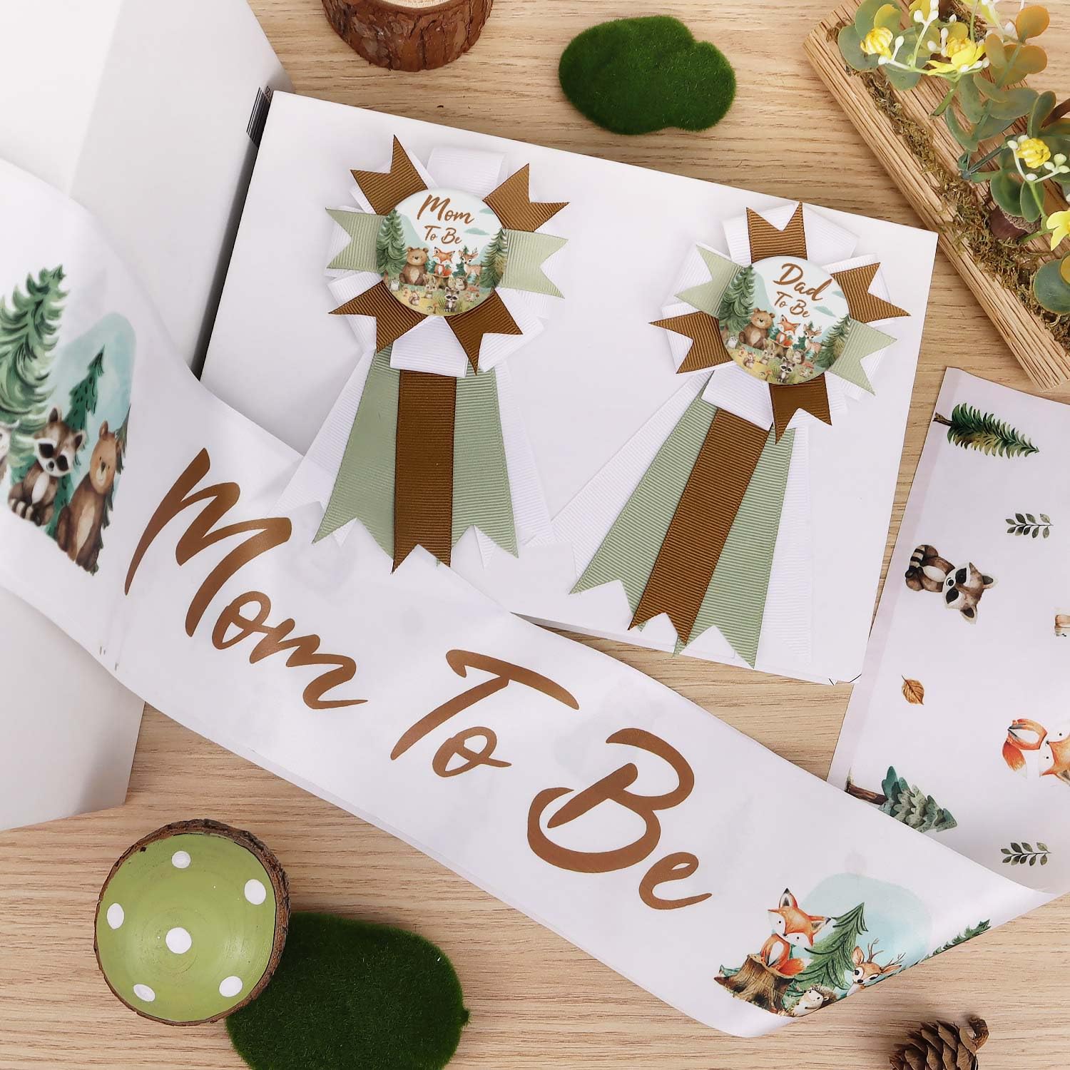 Woodland Baby Shower Sash Set: Come with 1 mom-to-be sash, 1 mom-to-be pin, and 1 dad-to-be pin. Suitable for celebrating the arrival of the baby and brings an unforgettable memory for everyone