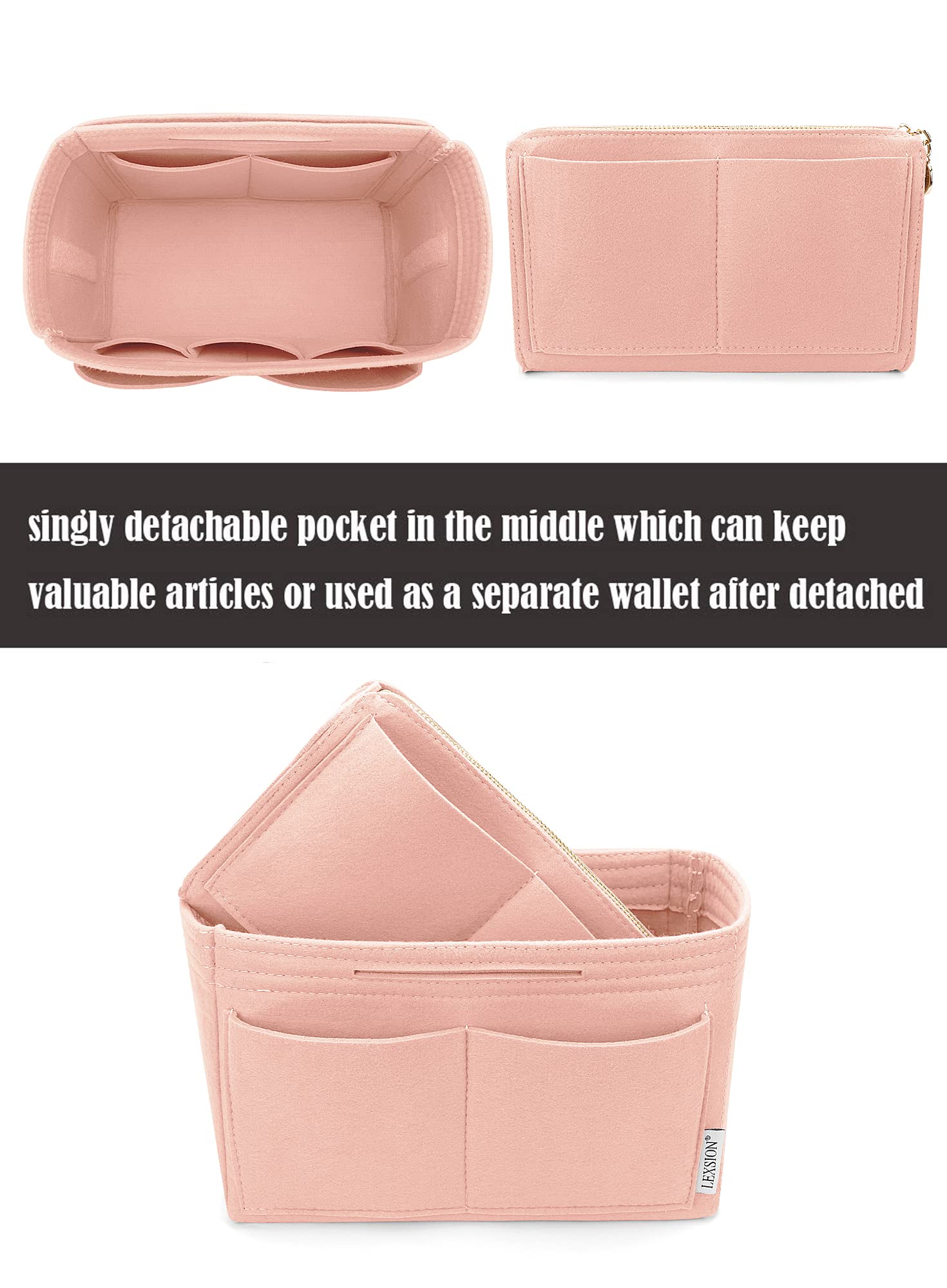 KEEP BAG CLEAN&SHIPSHAPE:13 Pockets Total Purse Organizer,3 exterior pockets, 10 interior pockets with singly detachable pocket in the middle which can keep valuable articles or used as a separate wallet after detached.It keeps everthing neat and well organized shaped.