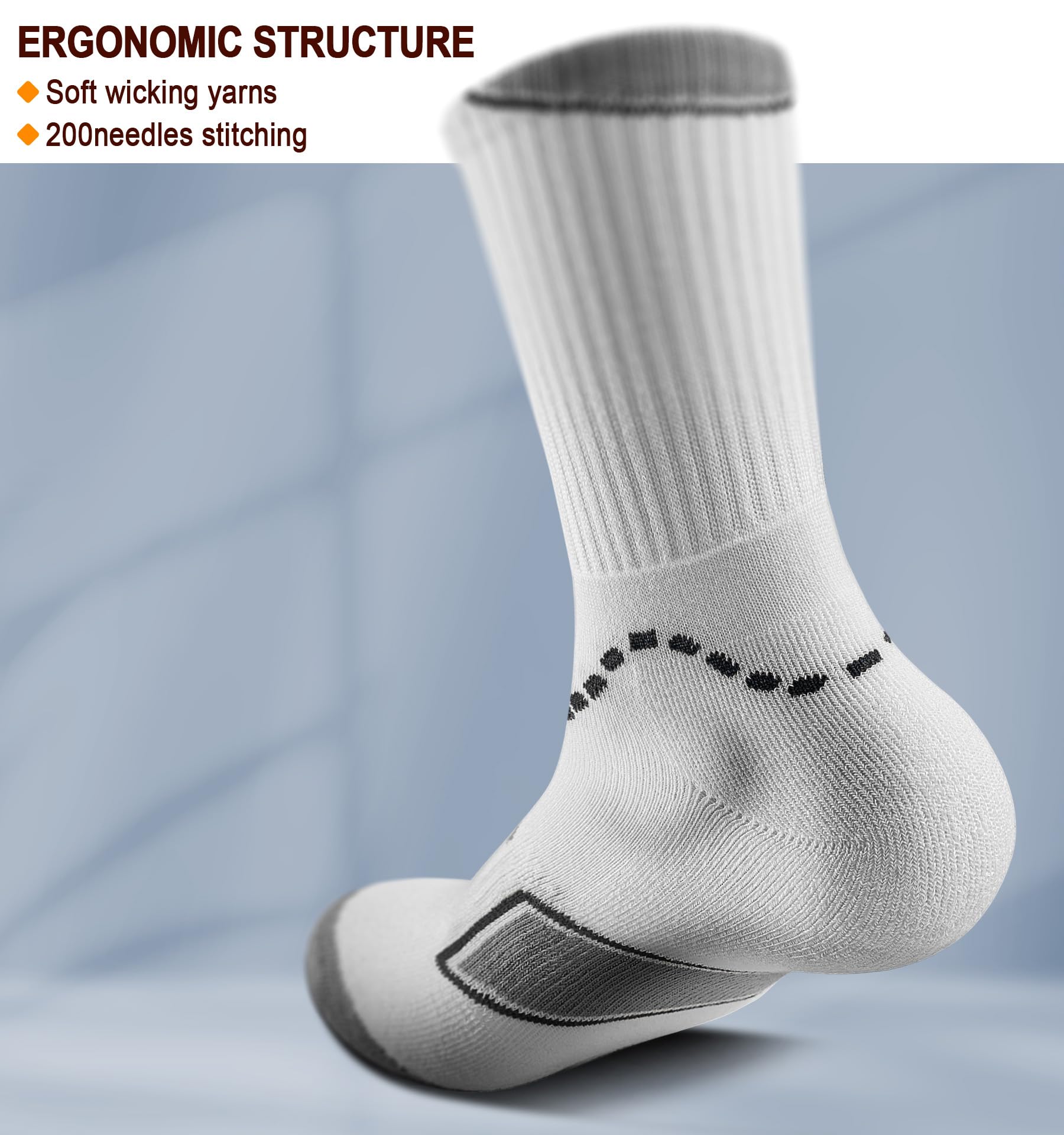 SURPORTIVE--Soft yarns makes it super friendly to the feet,full cushioned sole and arch support band gives the best shock absobing,these socks make you ever step comfortable and easier;