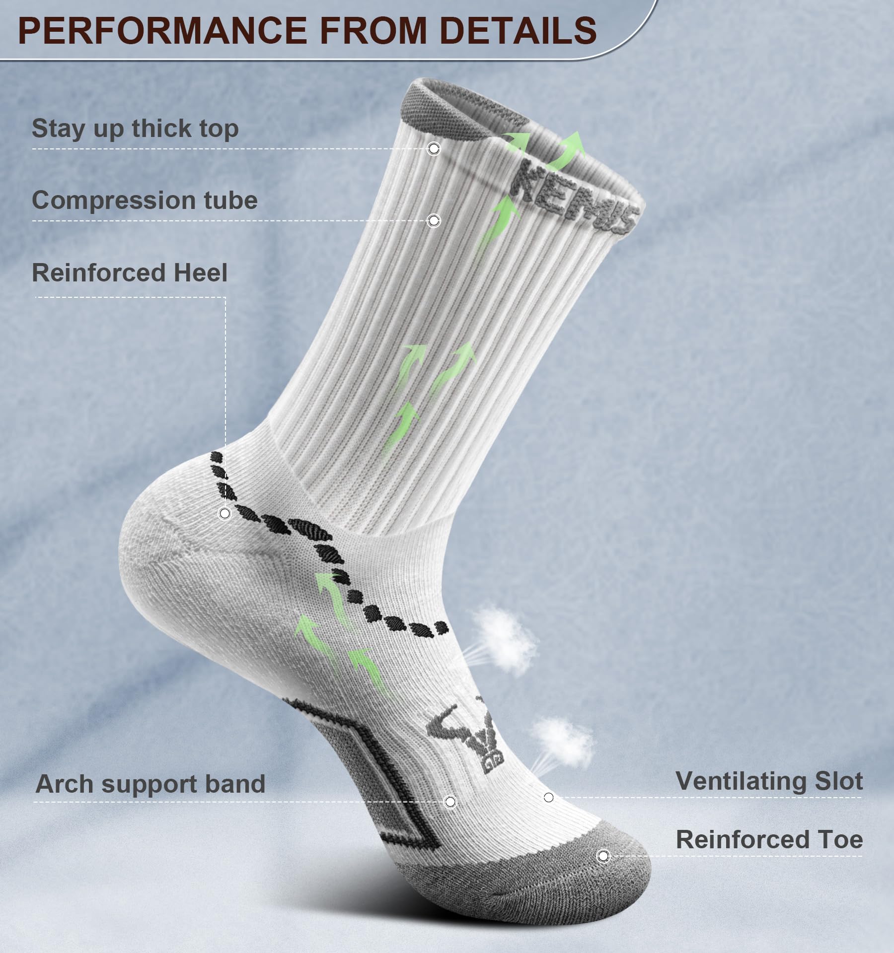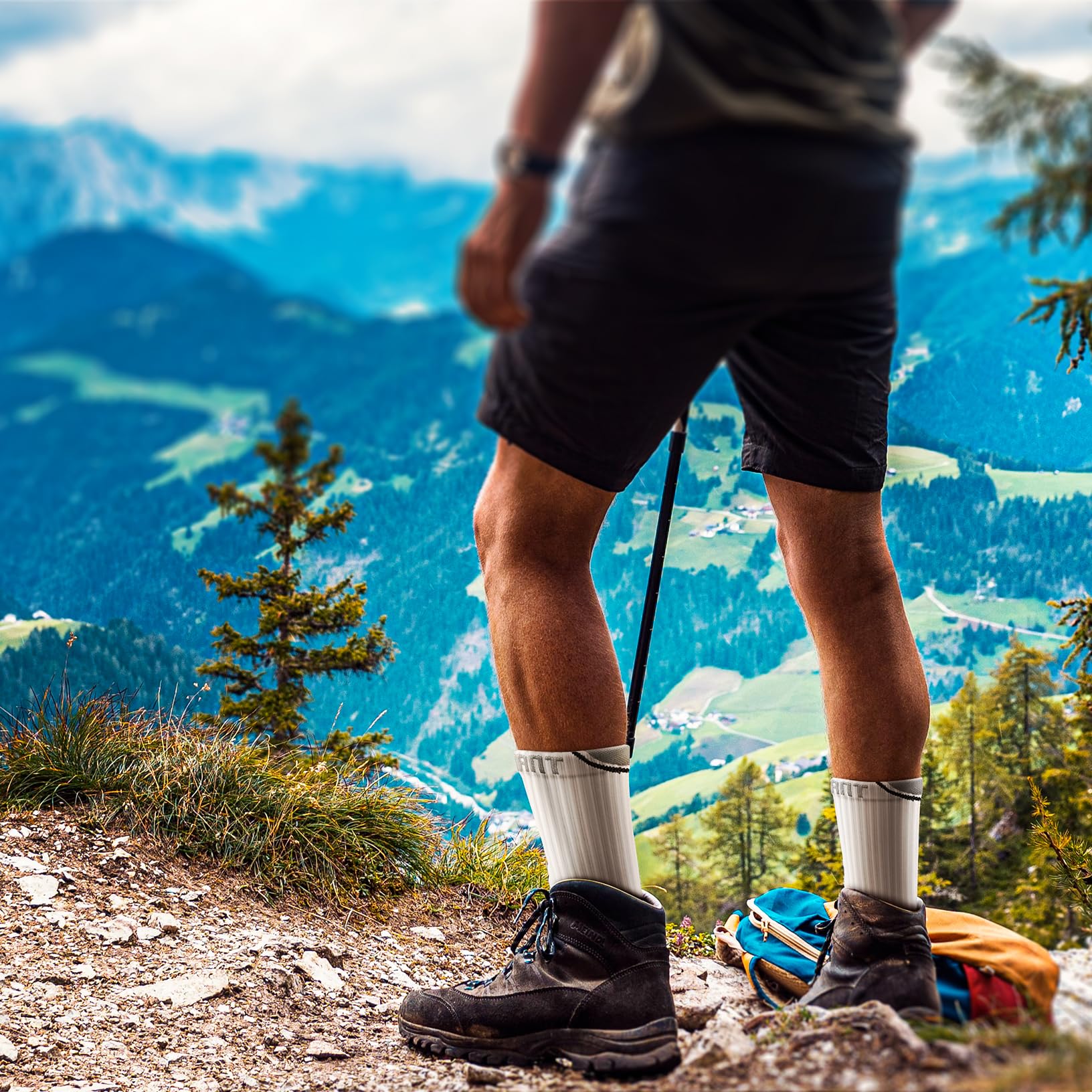 BREATHABLE--High efficient wicking yarns makes it quick moisture taking,the ventilation channels enhance its air flow,these socks can keep your feet dry all the day;