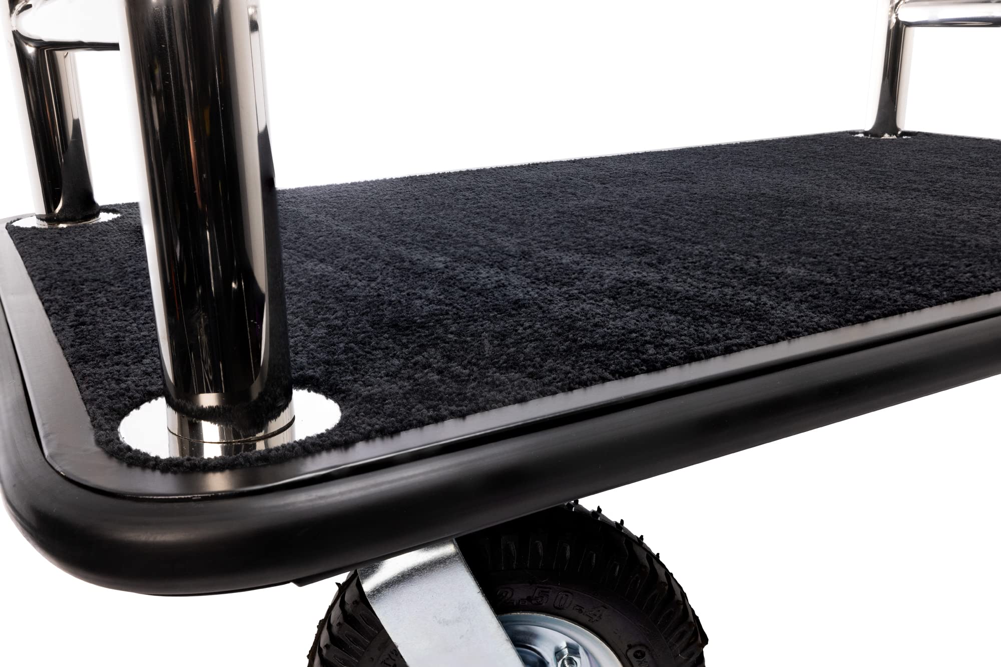 PLUSH CARPETED DECK FOR LUGGAGE PROTECTION: The plush carpeted deck creates a cushioned surface that helps prevent luggage from scratches and scuffs. Its stain-resistant material maintains a clean look, making it ideal for hotels, resorts, and valet stations. The non-scuff bumper adds extra protection for walls and furniture, ensuring smooth transport without damage.