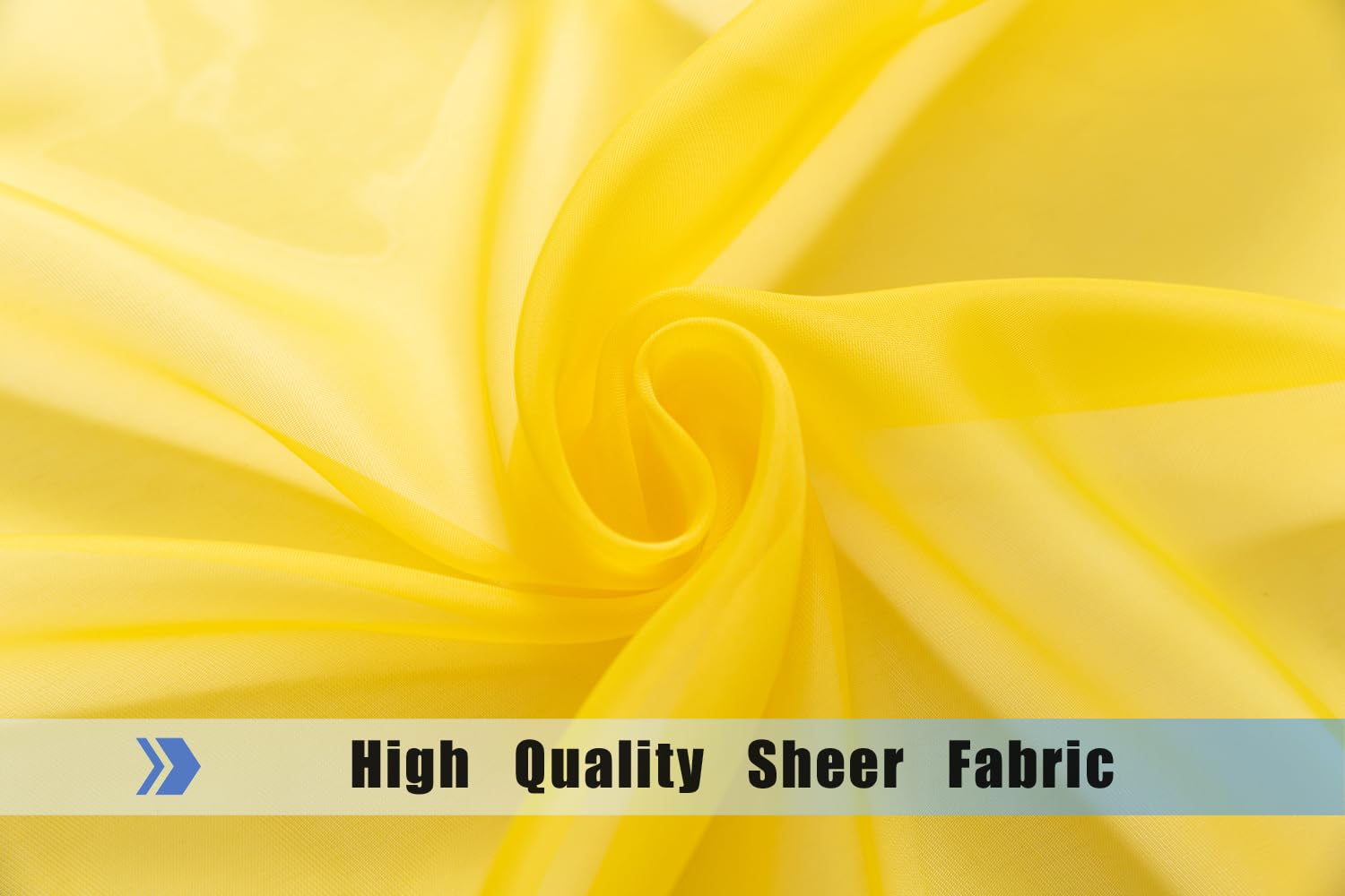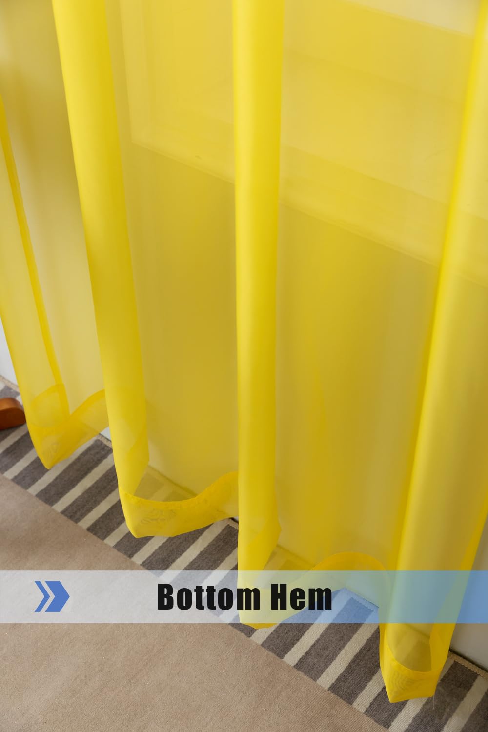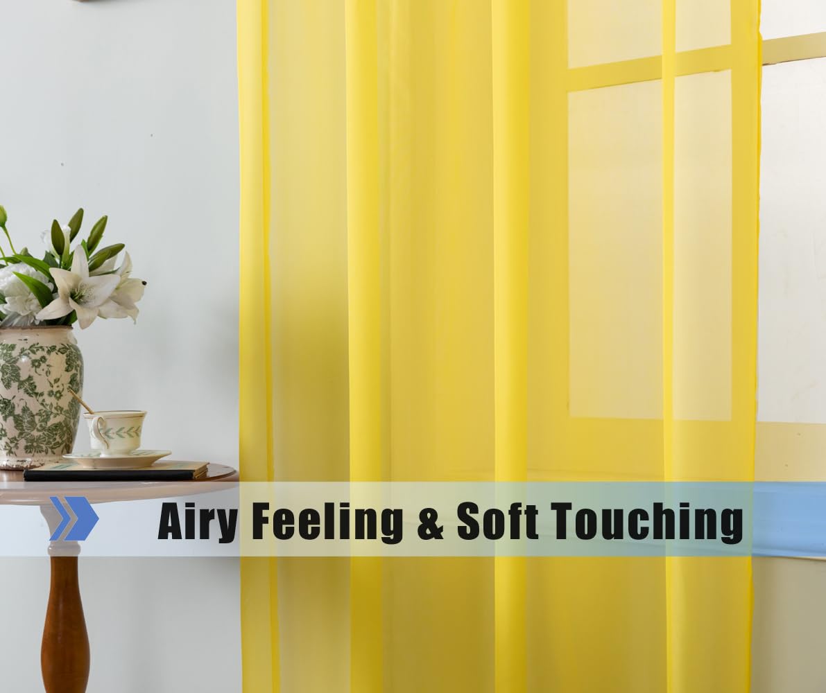 WPM Yellow Color Sheer Curtains 58" Wide x 84" Long 2 Panels Livingroom Window Treatment Rod Pocket Sheer Voile for Bedroom, Kitchen, Children Room Fully Stitched and Hemmed