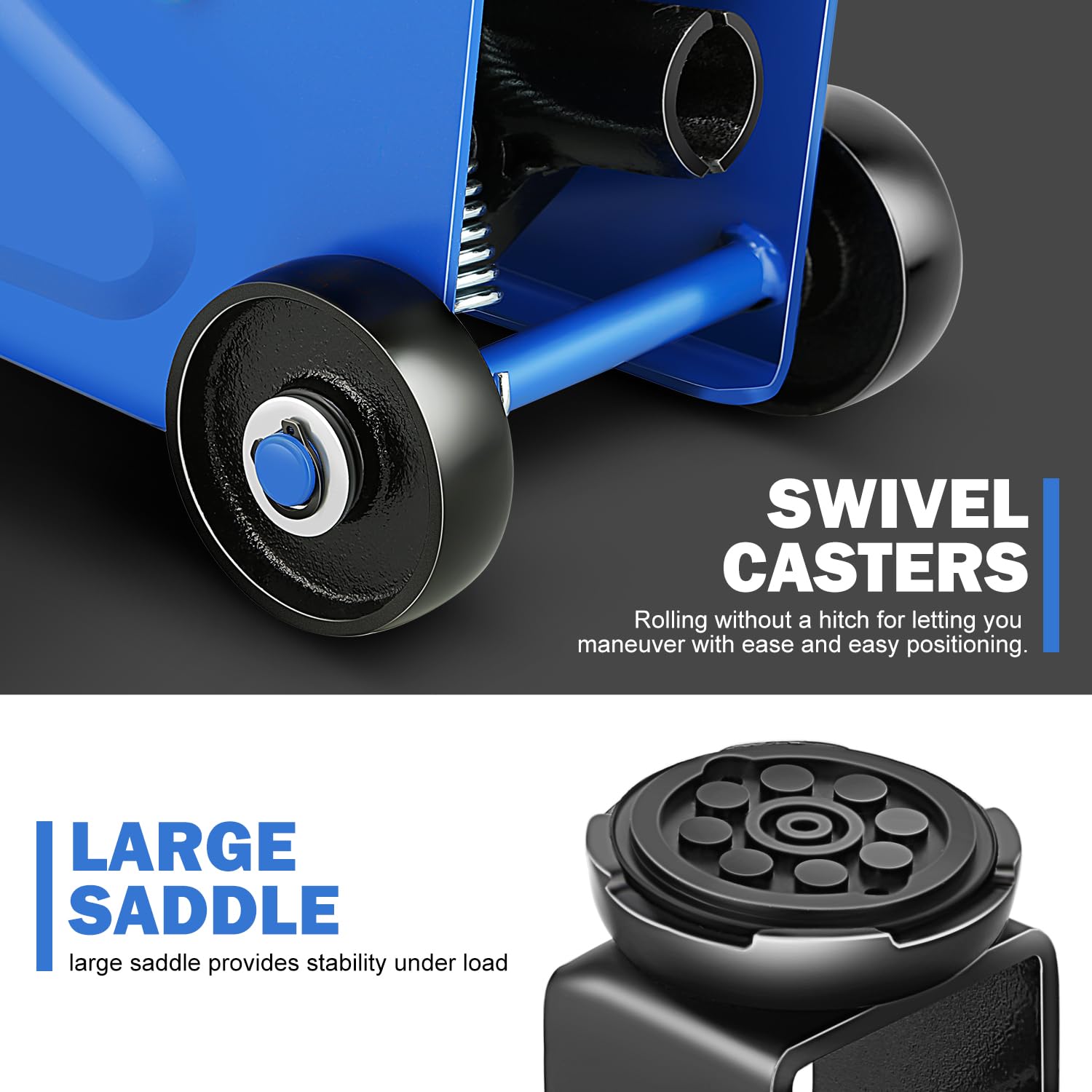 OVERLOAD PROTECTION & EASY JACK POSITIONING - Built-in dependable safety release valve triggers in the event of an overload to prevent damage or injury. The large saddle provides extra stability and helps protect your vehicle.
