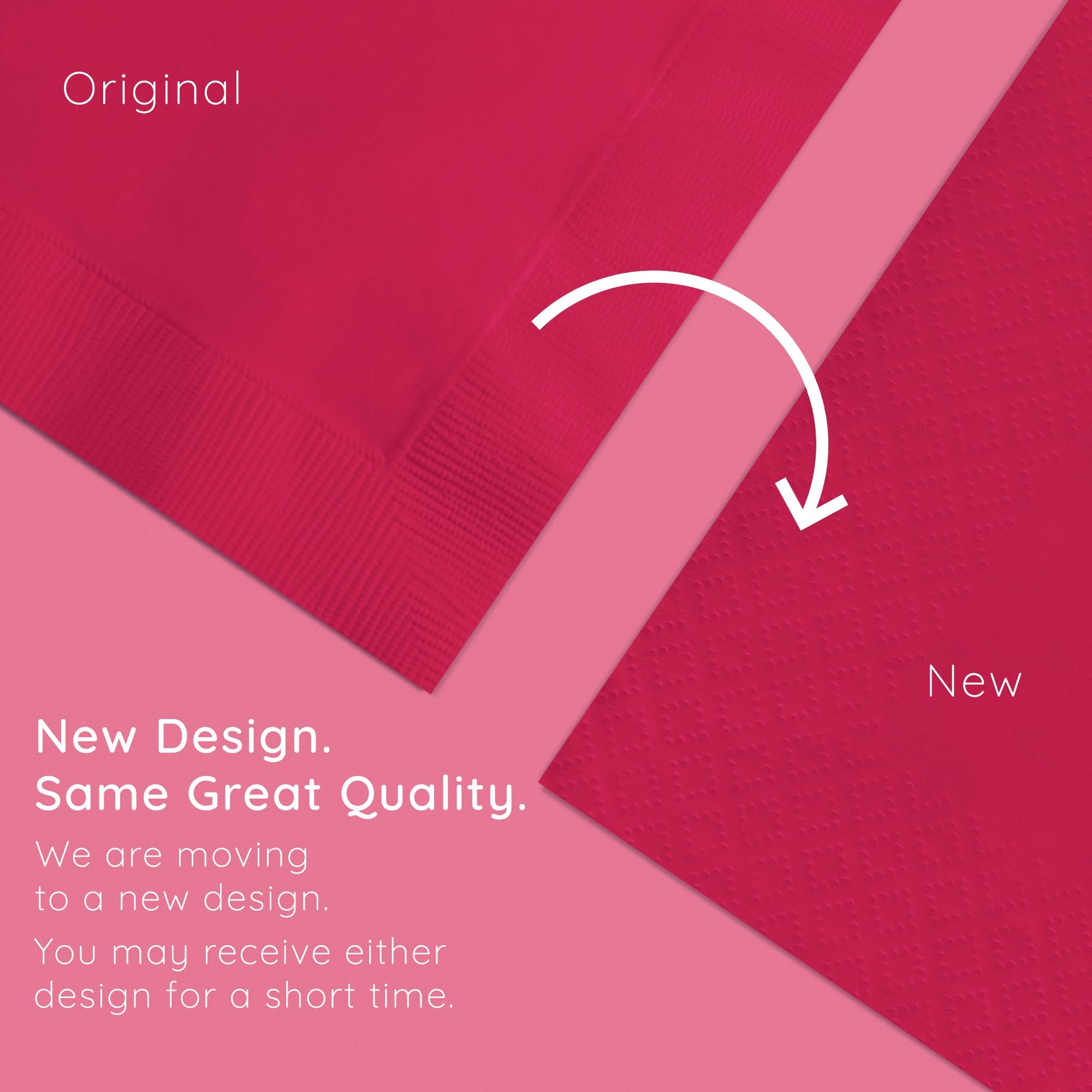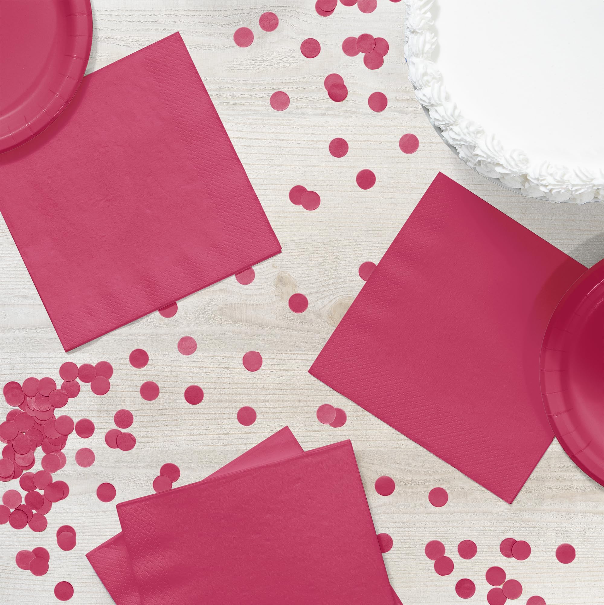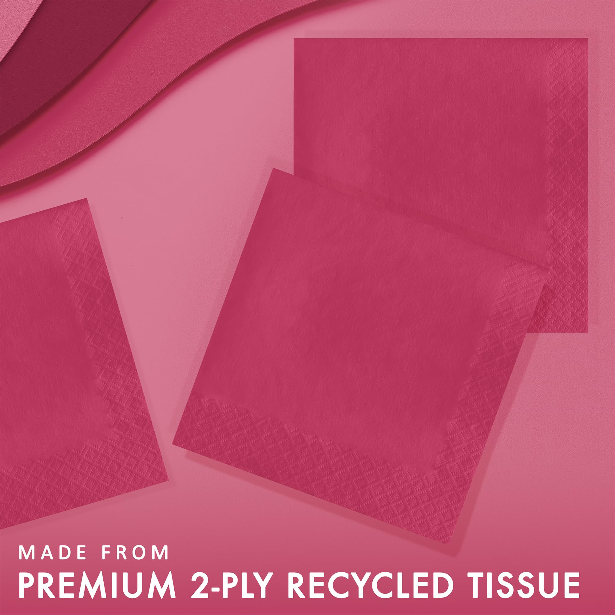 Turn up the heat and add a splash of fiery color to the table settings for your event using our Hot Magenta Luncheon Napkins. Each 12.88'' x 12.88'' 2-ply paper luncheon napkin features an all over hot magenta coloring with ribbed edges for easy grabbing. The eye-catching color of these napkins make them perfect to use for a variety of events including corporate events, wedding receptions, luncheons, bridal showers and more. 50 Hot Magenta Luncheon Napkins are included per package.
