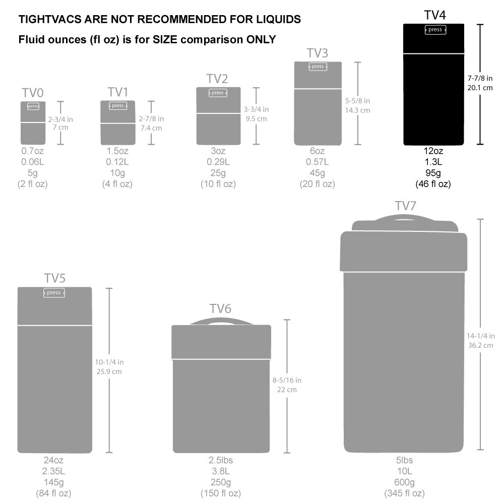 The perfect 12 oz. Gourmet Coffee & Tea Container. The ultimate brown sugar storage container prevents caking and hardening. Dry goods such as tea, sugar, pasta, rice, trail mix, candies, cereals, cookies, crackers, flour, dried fruit, protein powders will last 3x longer. Refrigerated items such as cheese, lettuce, parsley, basil, cut onions, scallions, zucchini and most leafy vegetables will last 2x longer. Keeps dry goods up to 1 year and beyond! Simply the best container for RV’s & travel, camping, boating, cottages and second homes. Store any Tightvac conveniently on the countertop, in the pantry, the fridge or freezer. Our Vacs save you money and guarantee fresher for longer food storage.