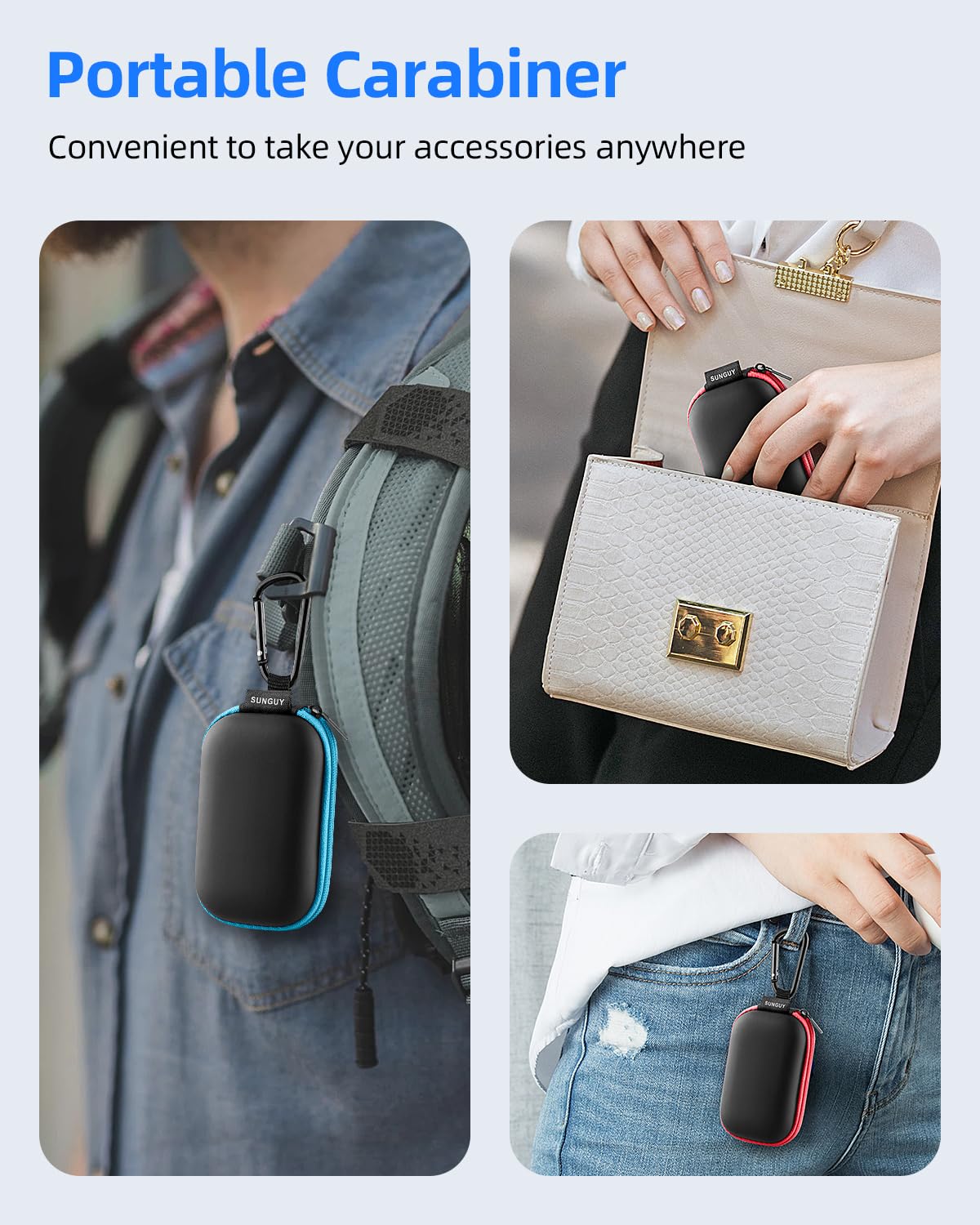 【Easy to Carry】Comes with carabiners for easily and safely hook to your handbag,backpack,pants belt.