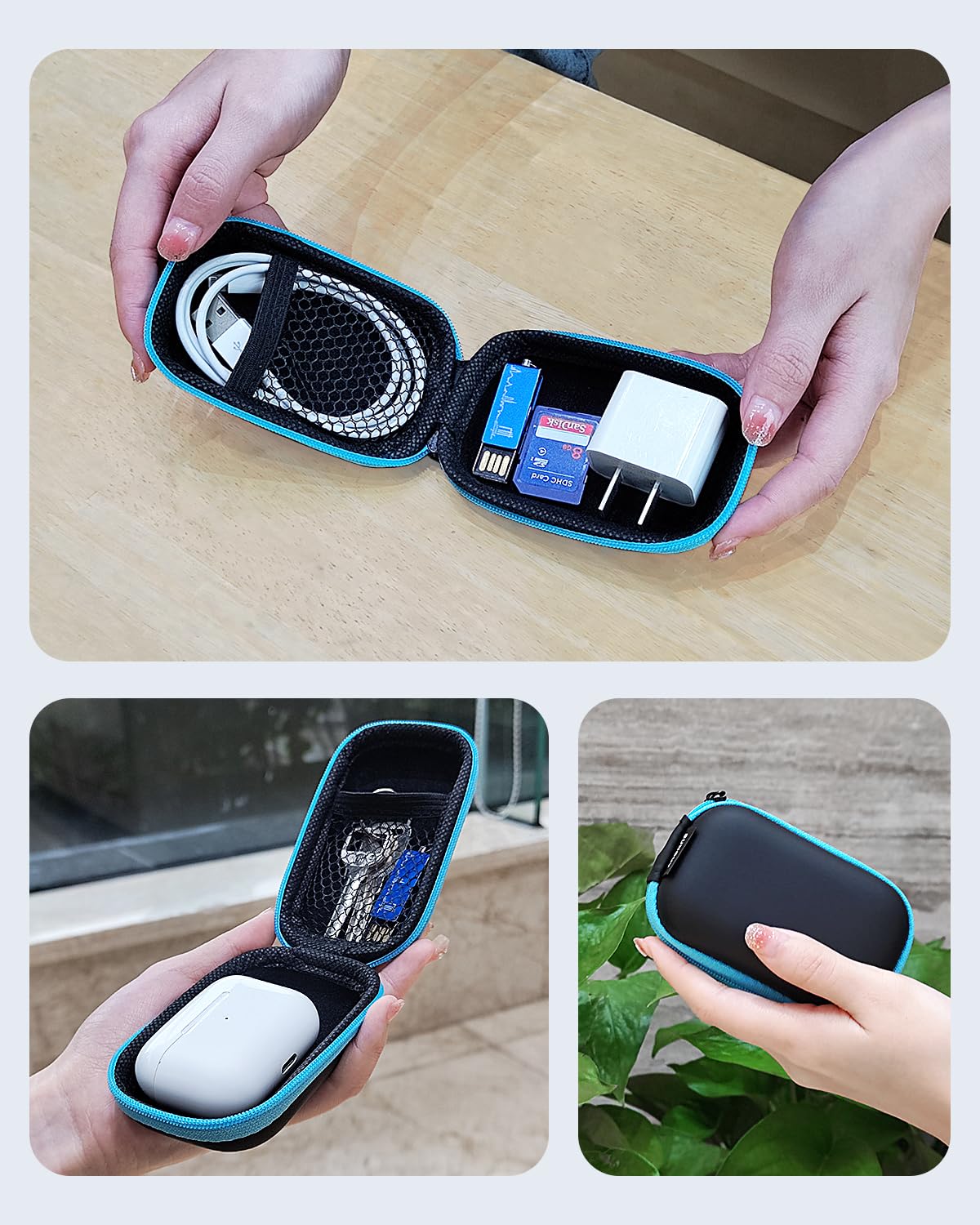 【Multi-function storage】EarCater Carrying case used to storage your AirPods, hearing aids, USB charging cable, USB flash drive, SD cards, coins, keys, and other small items or cell phone Accessories.