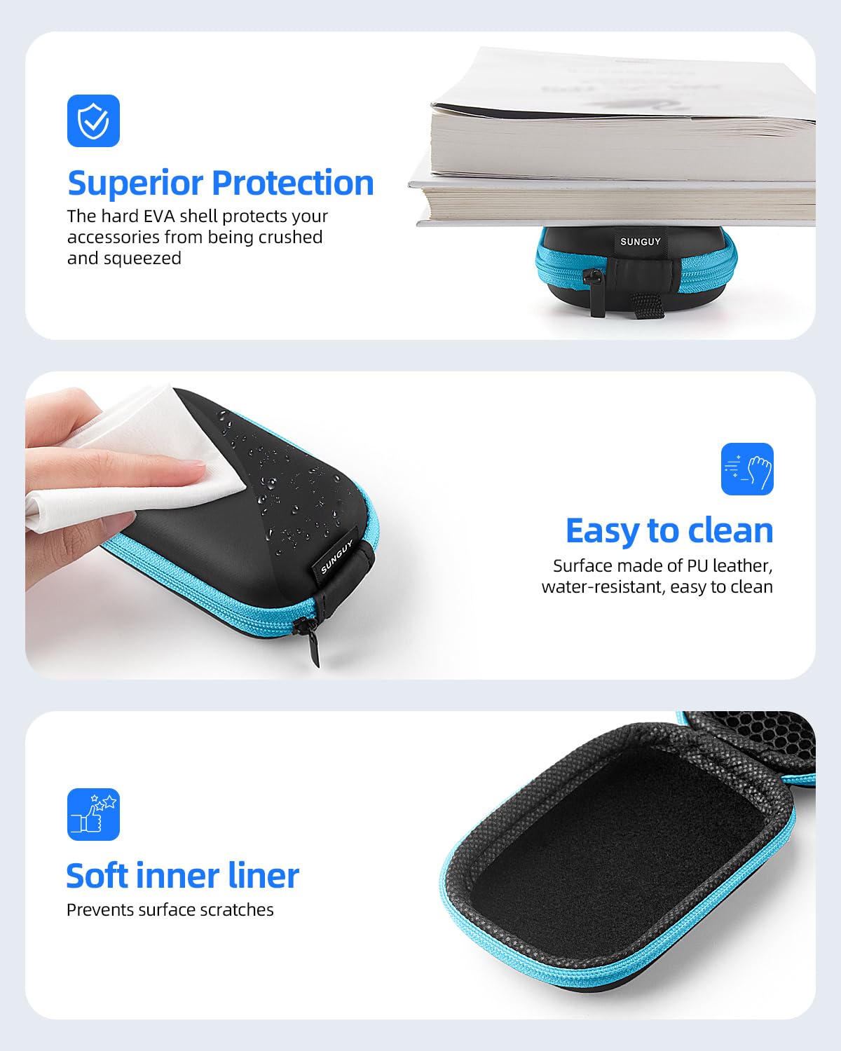 【Rectangle Headphone Case】The rectangle Case make the headphone cable to be better placed without the knot,The inside mesh pocket can separate the corded, headset, cables or other things, which can prevent them from twisting or mixture together.