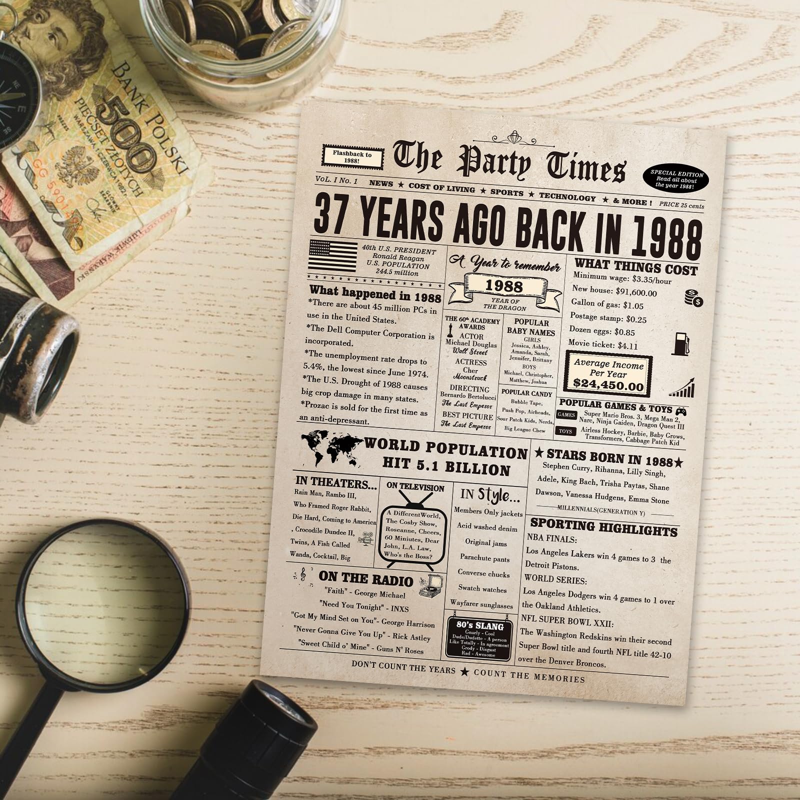It's a great conversation piece. It's interesting to look back and see how much everything cost back then and the history of what was going on. An unique and memorable birthday gift when you don't know what to get for someone. The perfect remembrance to tuck in a gift box or gift bag. With its classic and retro style, this 37 bday card will bring a vintage touch to your home decorations, make your gift stand out. Ideal gift idea for your parents, father, mother, husband, wife, sister, brother, best friend, colleagues, classmates, teachers, etc.